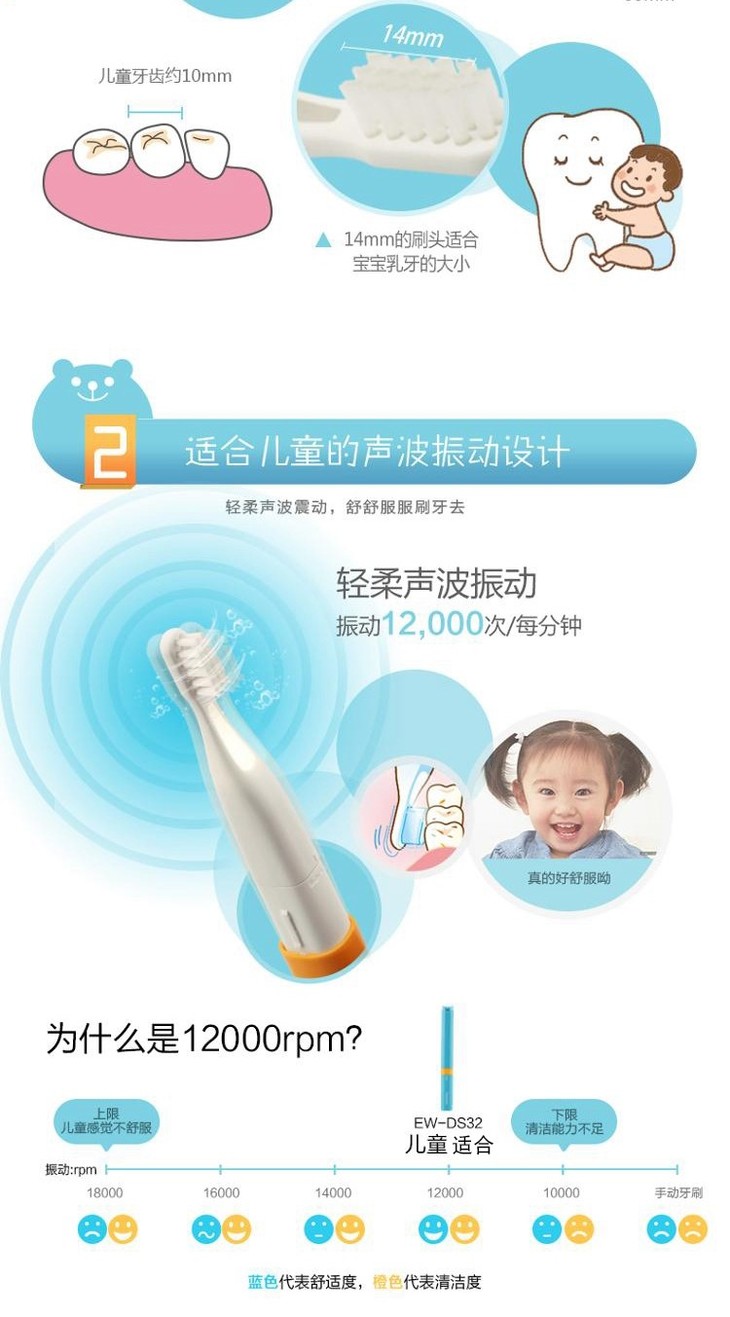 【一般贸易】·松下 儿童电动牙刷 软毛超声波 EW-DS32