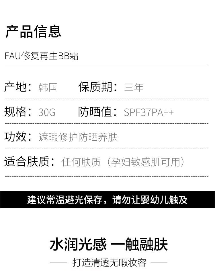 【爆款超低价预售 急单慎拍】韩国V FAU修复再生BB霜提亮肤色小黑管保湿粉底液遮瑕CC棒气垫女