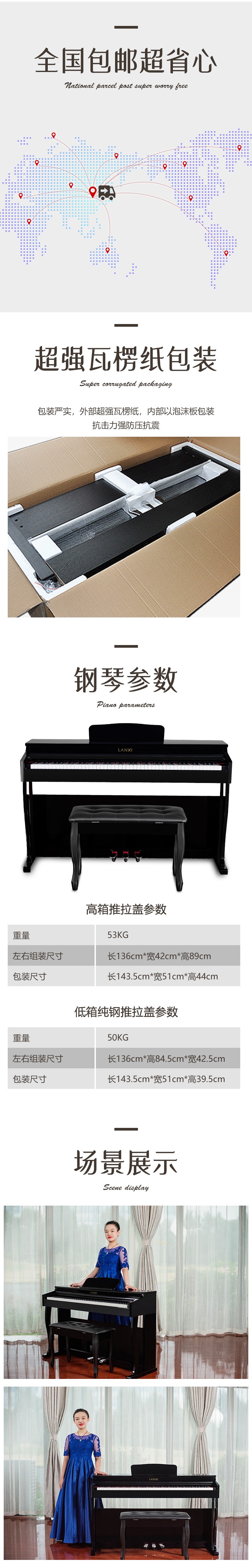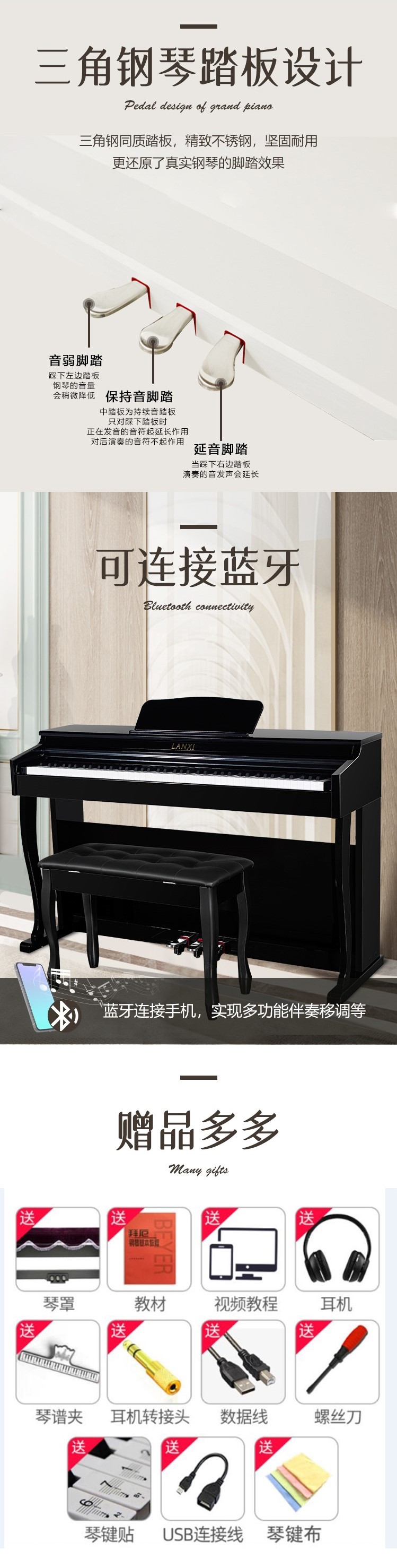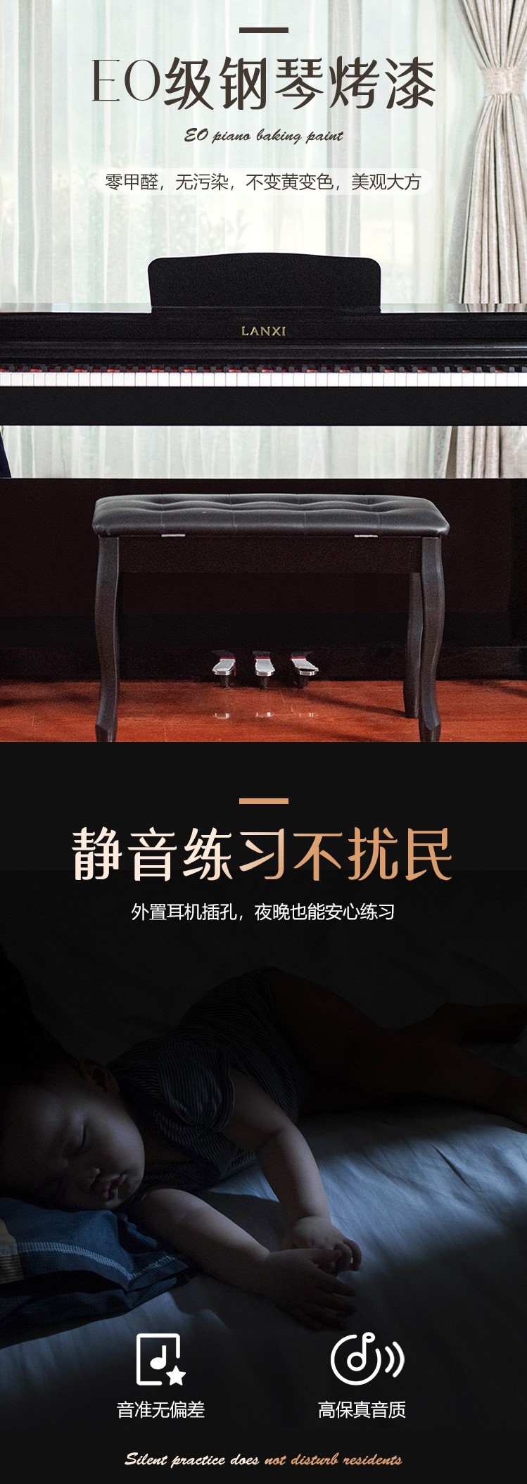 蓝玺电钢琴【LANXI】上海音乐出版社官方推荐品牌 88键数码钢琴 电钢琴 重锤钢琴手感 三踏板设计 多功能效果