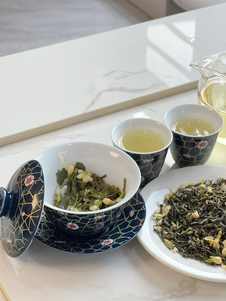 ·🍃 一盏春冰融月色,九窨香雪落茶心。 ·🍃 窨得茶山千朵雪,赠君一盏夏清凉。 ·🍃 杯中藏尽三伏雪,喉底长留一段春。”