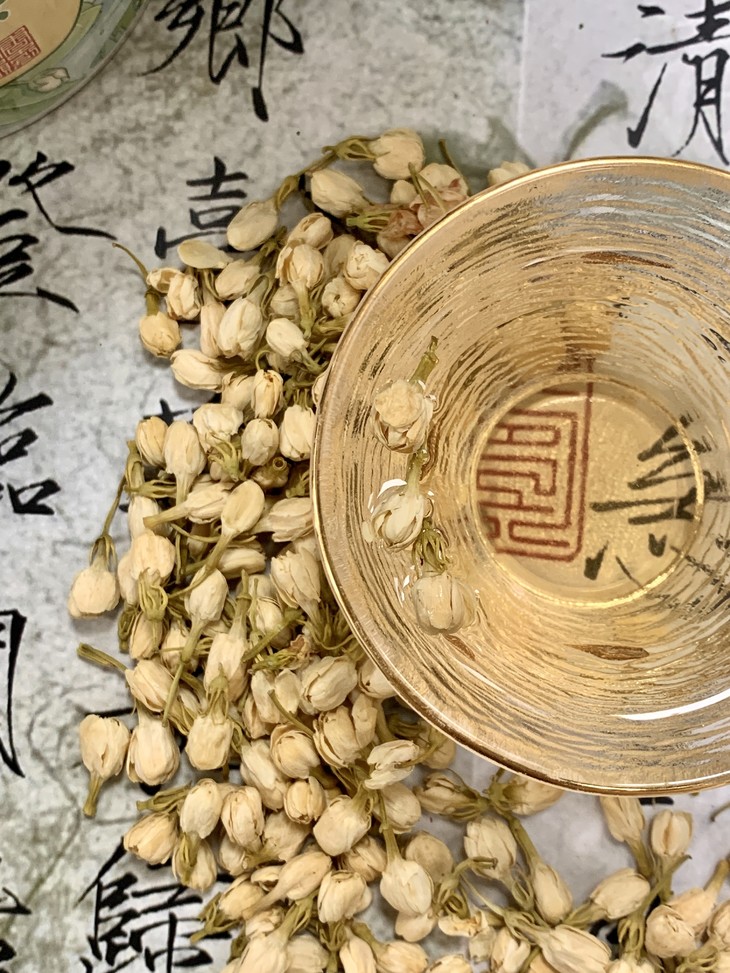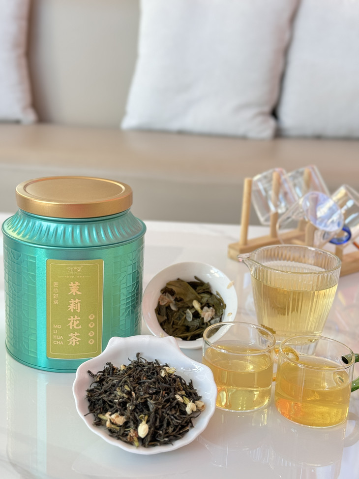 ·🍃 落茶如针,芽叶在水中舒展翩翩。 温润甘甜的茶汤入喉,仿佛置身细雨朦胧的初春,但又不乏夏日的亮丽清爽,喉间尽似糖水般清甜。 ·🍃 百花之中,若论香之浓、清、远、久,茉莉花可算得是“人间第一”了。所以,有人曾经表示:“他年我若修花史,列作人间第一香。 温馨提醒噢~ 泡茉莉花茶 时,最佳量为3-5g左右呦~这个量冲出来的口感最温和甘甜,量多了分解出来点茶香会偏浓蕴只适合少部分重口味的家人们呢