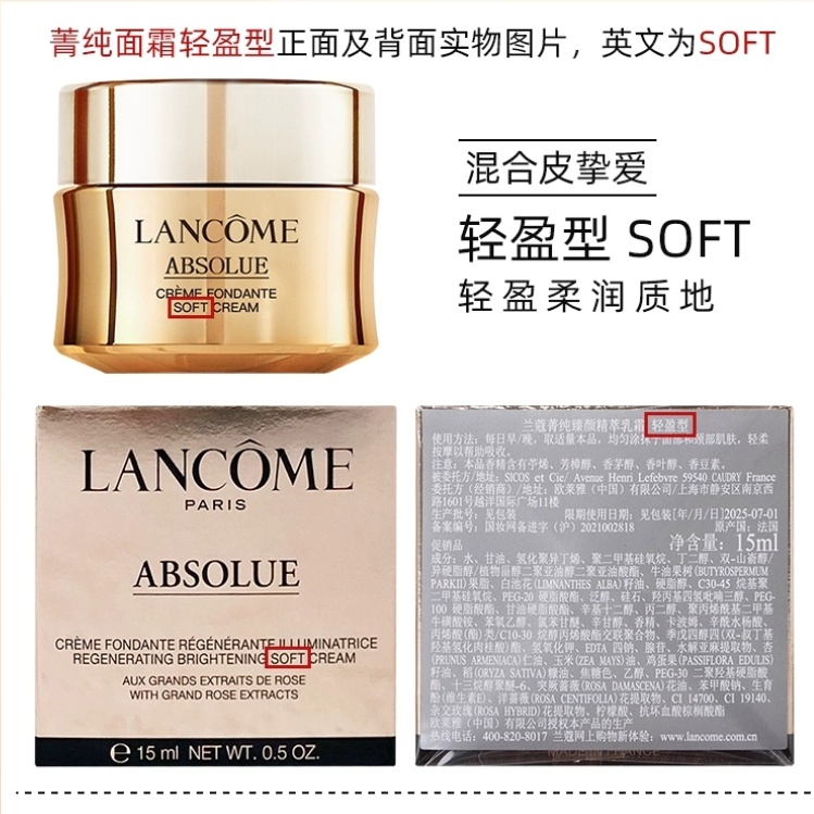【规格】: 兰蔻菁纯面霜15ml(滋润型)