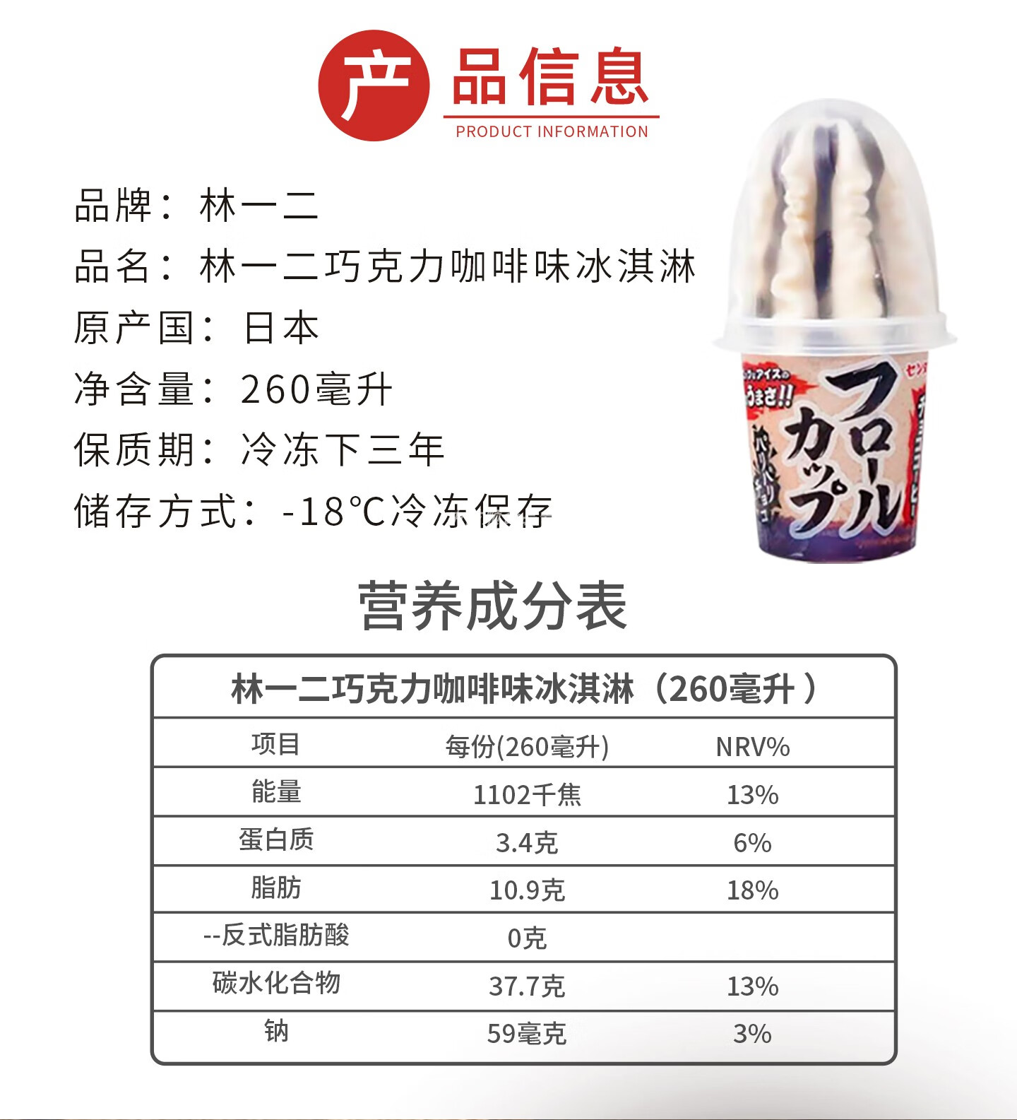 林一二巧克力咖啡味冰淇淋 170g/杯