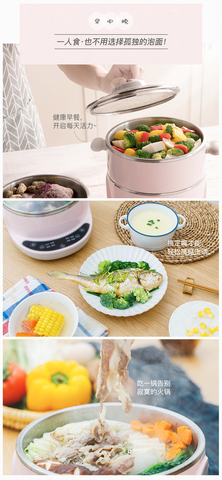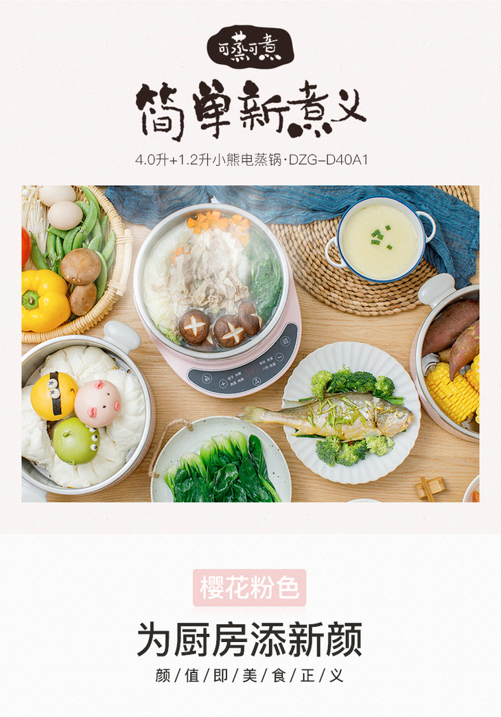 小熊(bear)电蒸锅电火锅三层大容量多功能小迷你不锈钢多层蒸笼分体式蒸汽锅蒸煮一体多用锅自动断电 DZG-D40A1