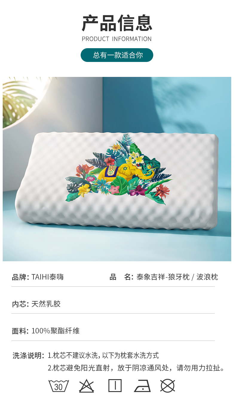 TAIHI泰嗨 泰象吉祥狼牙枕/波浪枕
