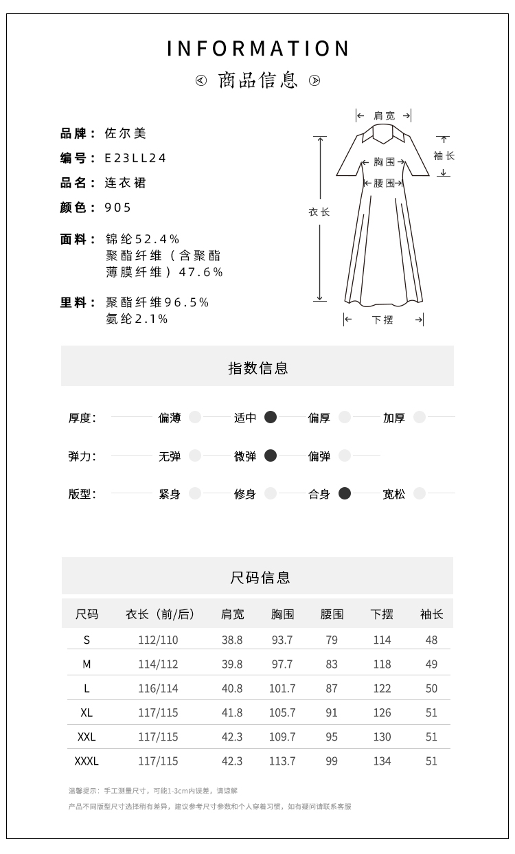 佐尔美夏季新款 桑蚕丝真丝提花缎中袖连衣裙女E22LS54