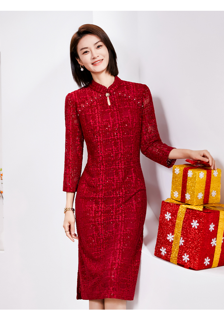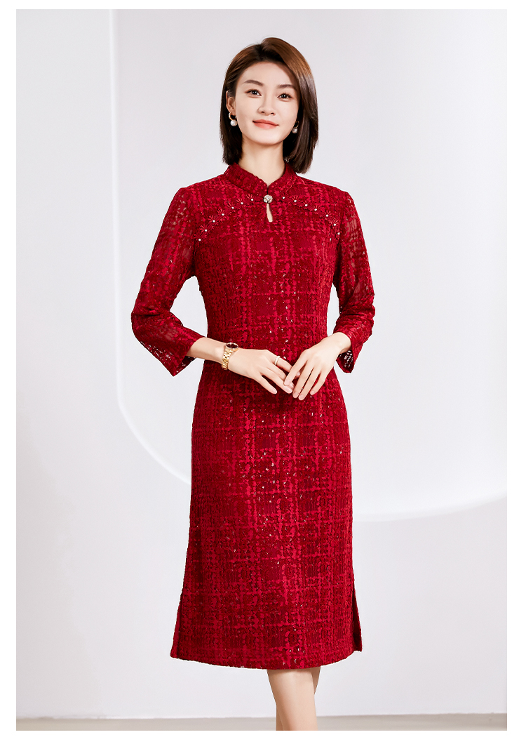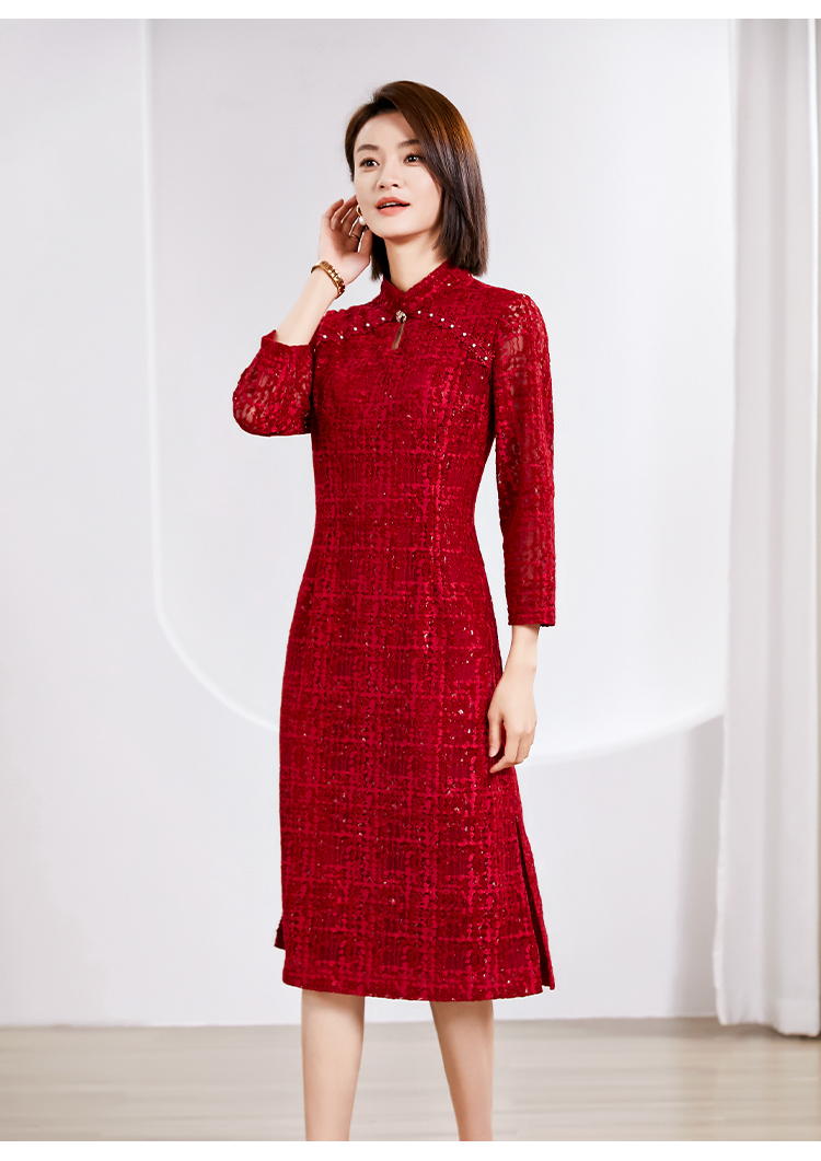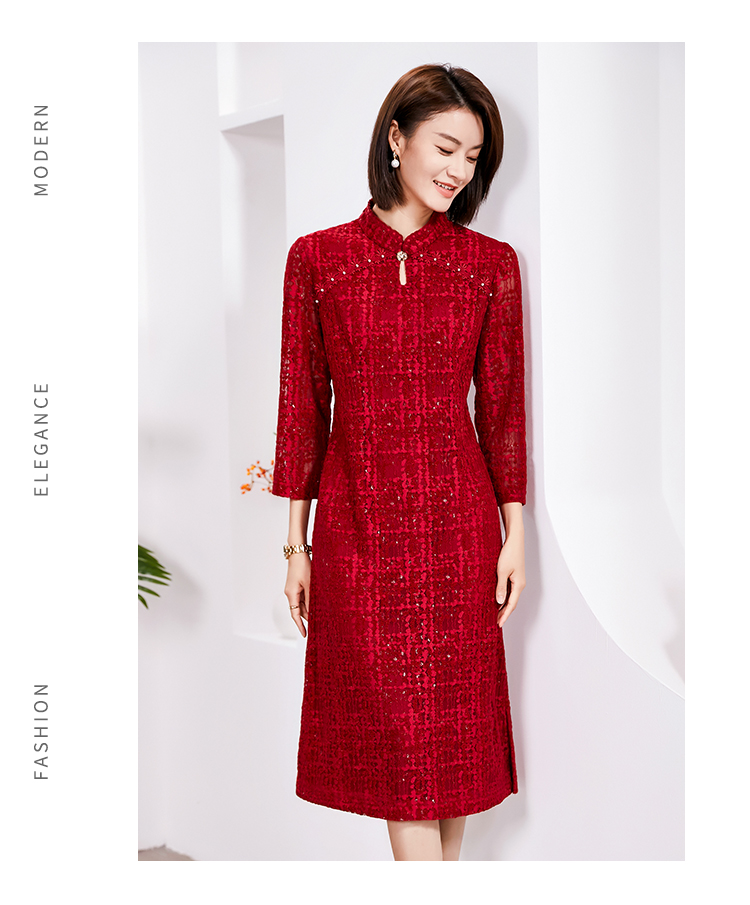 佐尔美春季新款 优雅气质国风中式七分袖连衣裙女E23LL24
