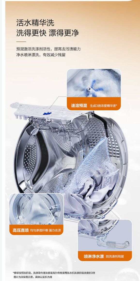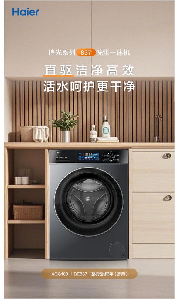 海尔追光系列837 直驱精华洗 双涡旋自清洁XQG100-HBE837
