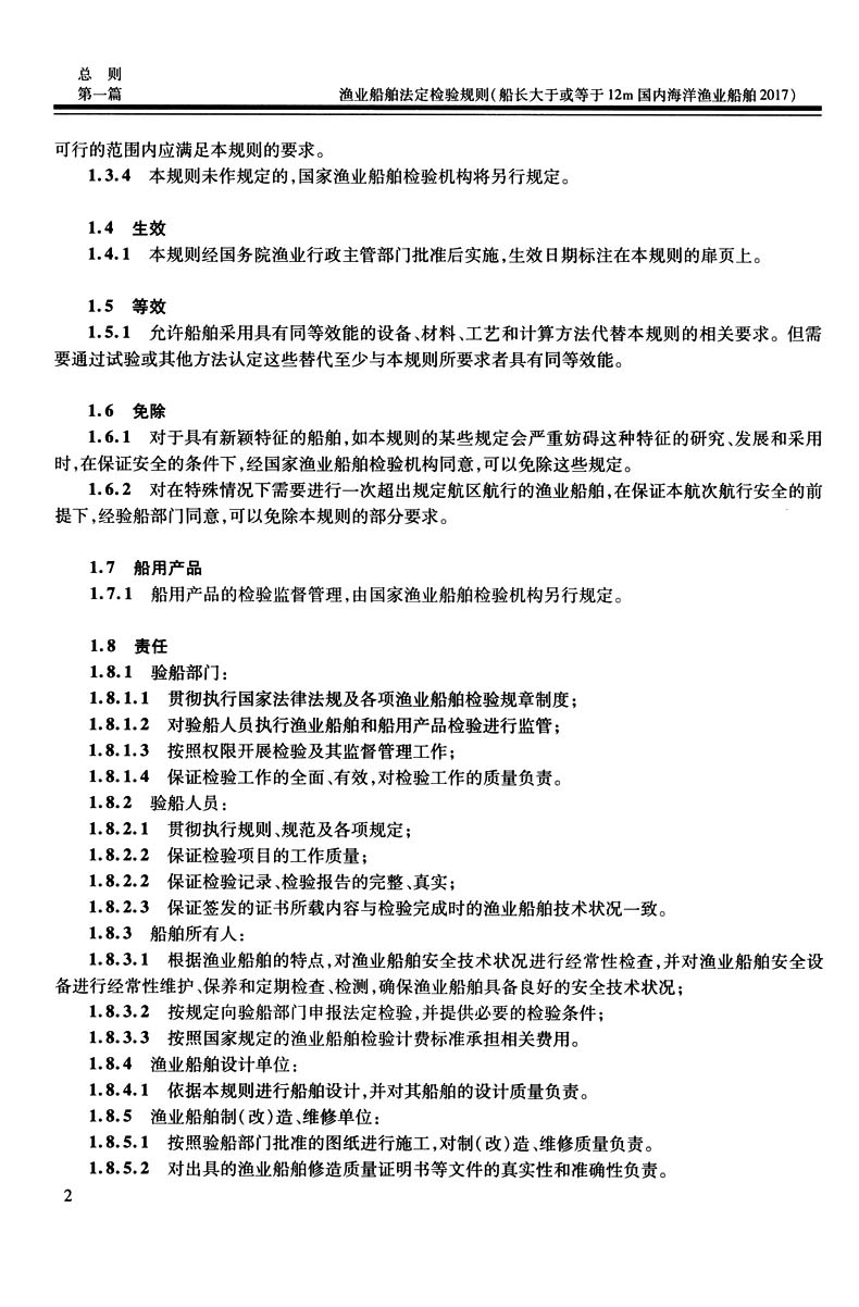 书名:渔业船舶法定检验规则(船长大于或等于12m国内海洋渔业船舶2017)