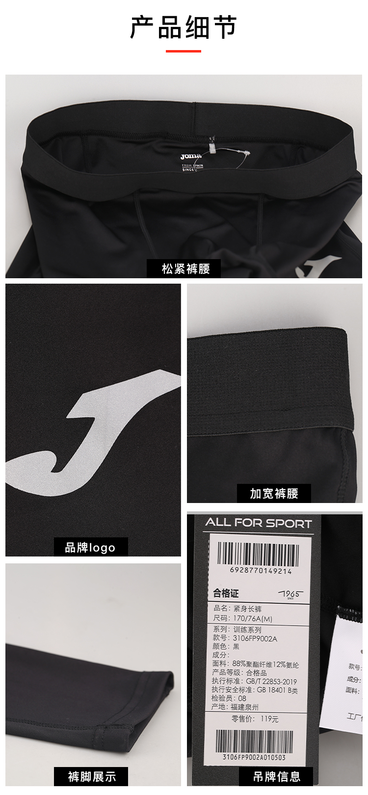 JOMA/霍马足球运动休闲训练比赛紧身健身打底长裤男3106FP9002A