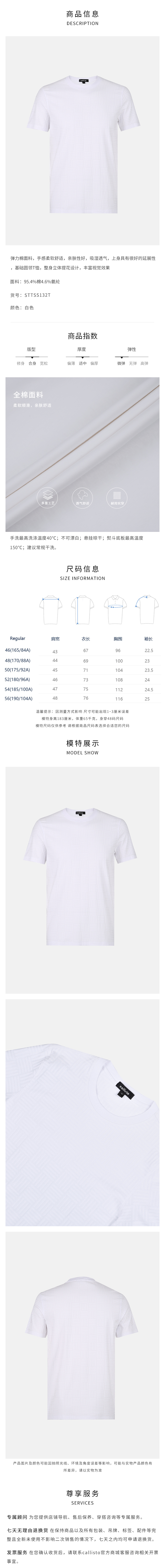 callisto白色弹力棉基础圆领短袖T恤 STTSS132T