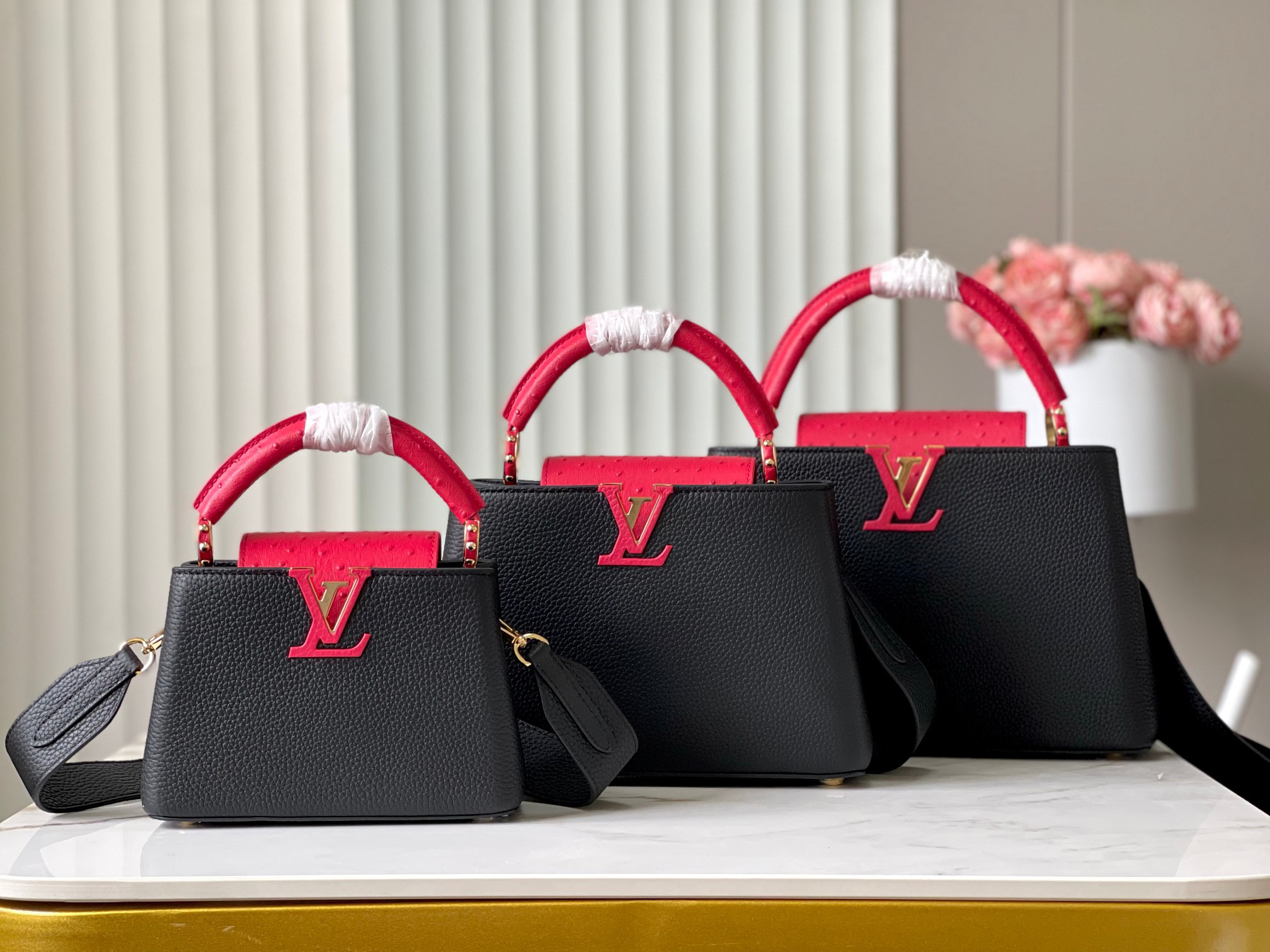 秋冬特惠💰1450 渠道级LV 新品 te级LV 全套包装 N82904/M48865黑拼红鸵鸟 本款 Capucines 手袋