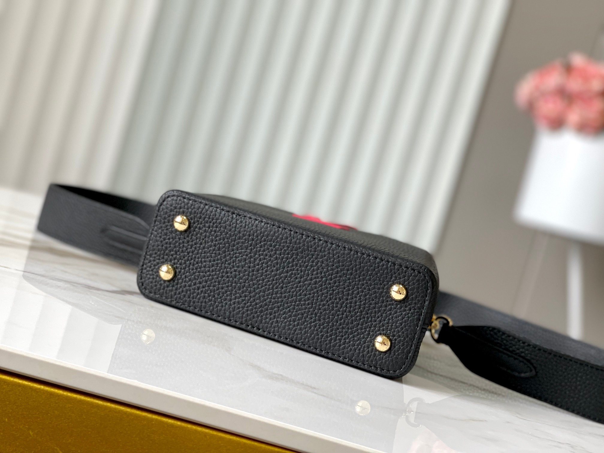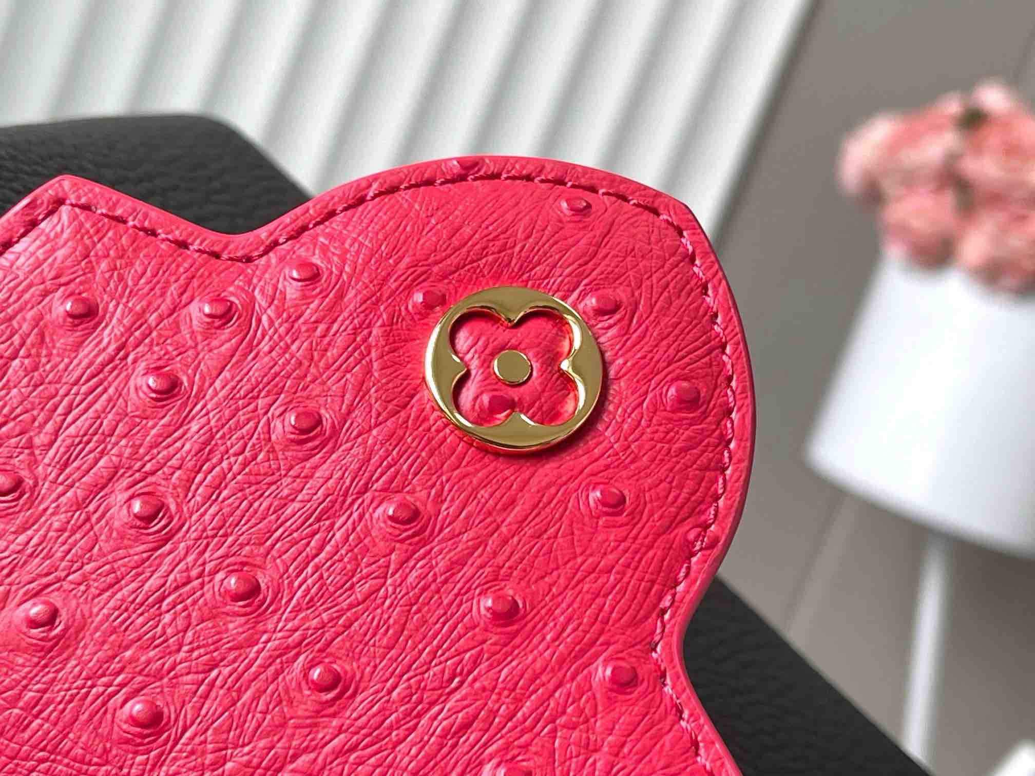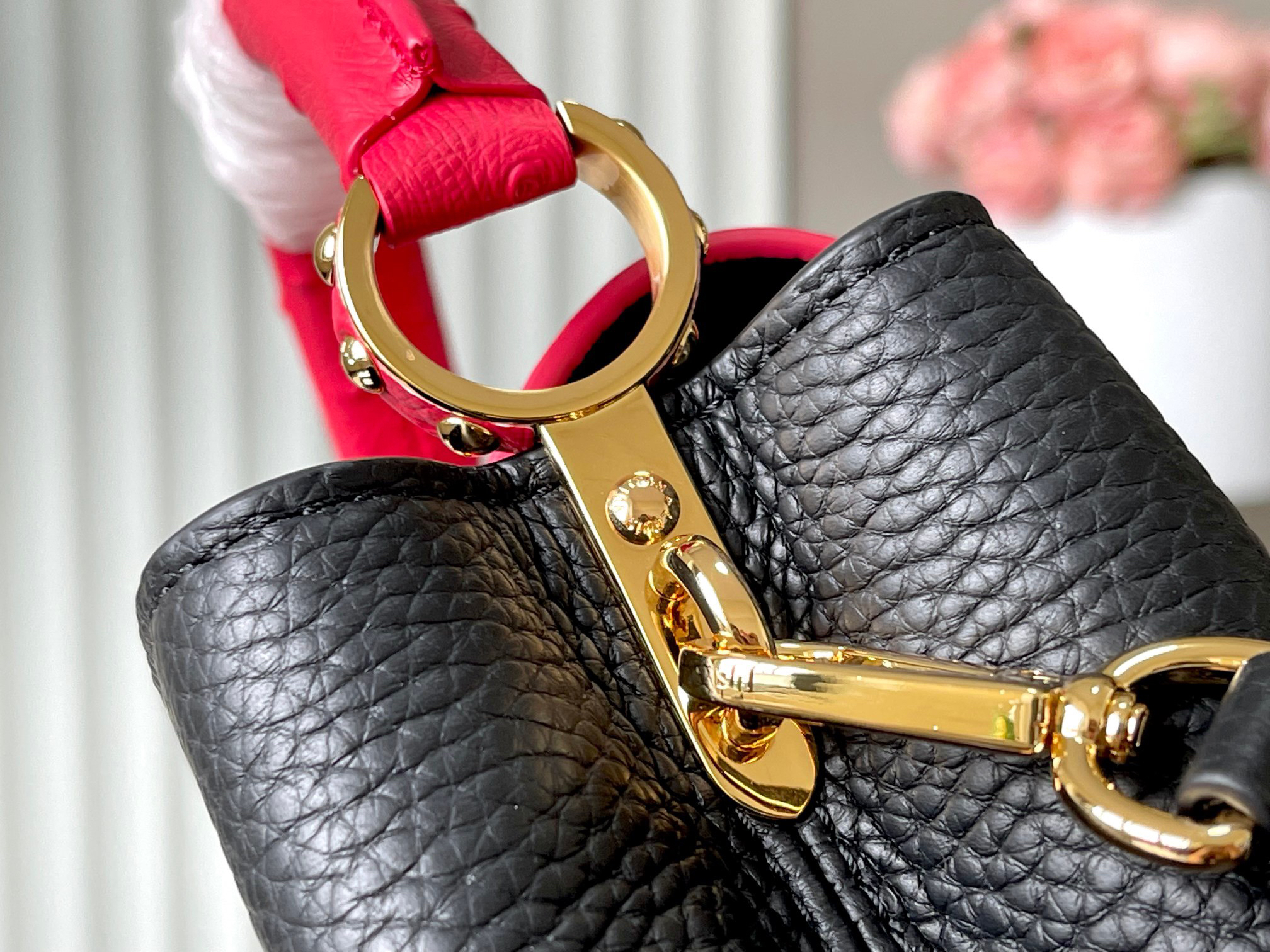 秋冬特惠💰1450 渠道级LV 新品 te级LV 全套包装 N82904/M48865黑拼红鸵鸟 本款 Capucines 手袋采用 Taurillon 皮革塑造玲珑构型 以鸵鸟皮革包裹翻盖、手柄和 LV 字母 翻盖可外置或内收以读取 LV 标识 可拆卸宽幅皮革肩带洋溢摩登风尚 Size:21 * 14 * 8 cm