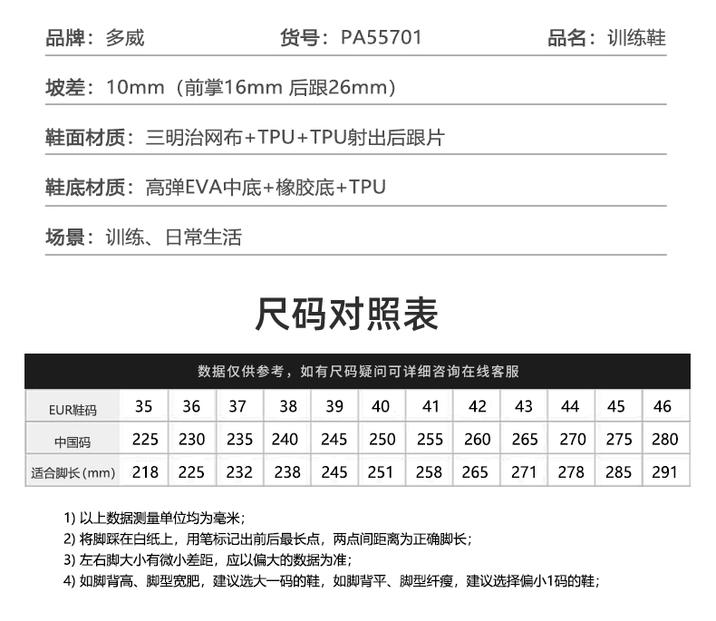 多威跑步鞋男黑色轻便户外体能训练鞋越野跑鞋专业运动鞋PA55701