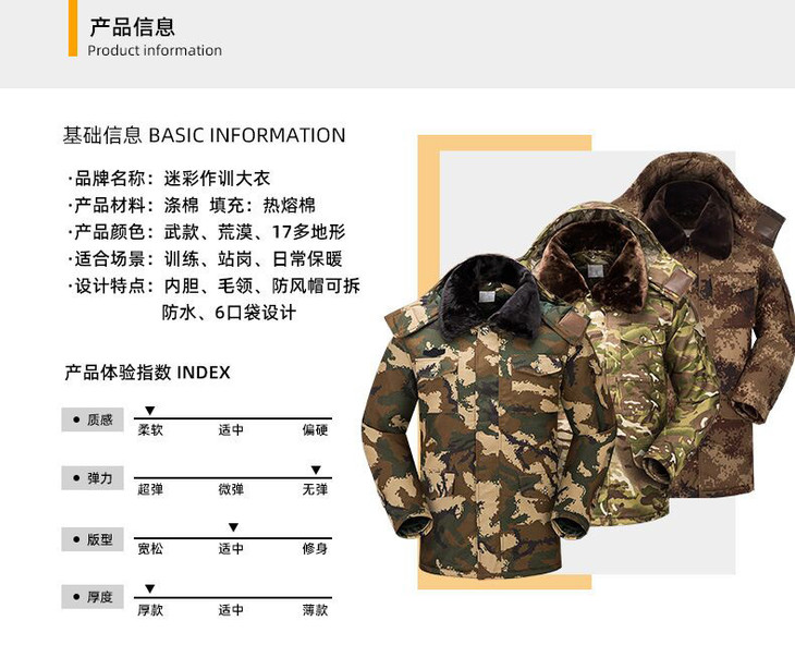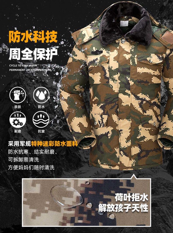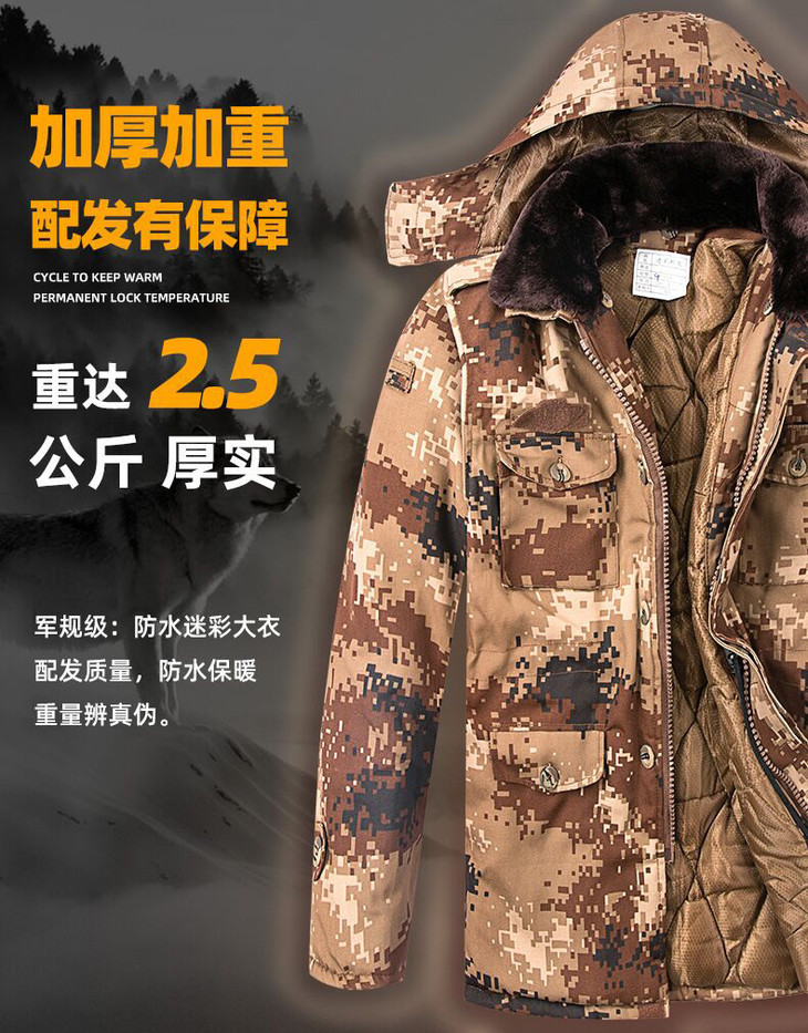 迷彩大衣荒漠迷彩防寒棉服加厚大衣军大衣男冬季迷彩防水作训棉大衣