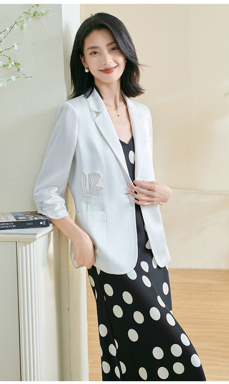 米思阳2026春季新款时尚高级感醋酸西装宽松花卉一粒扣外套女0522