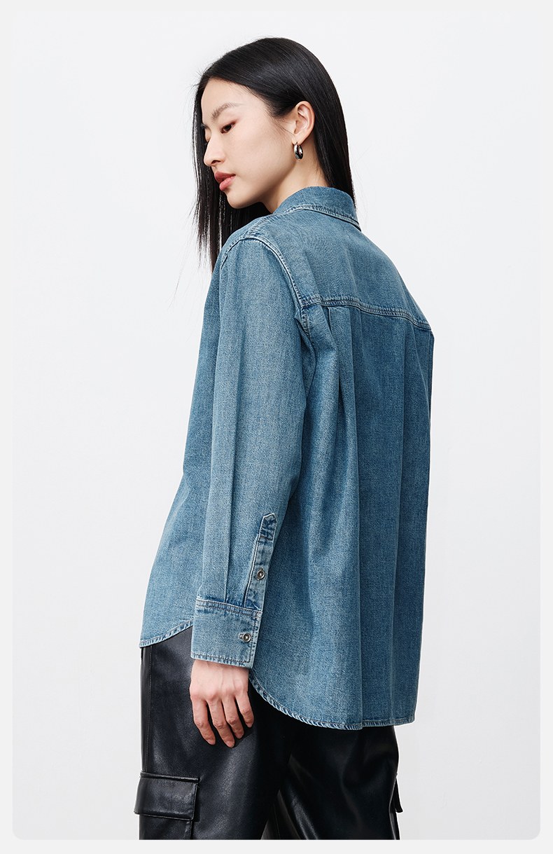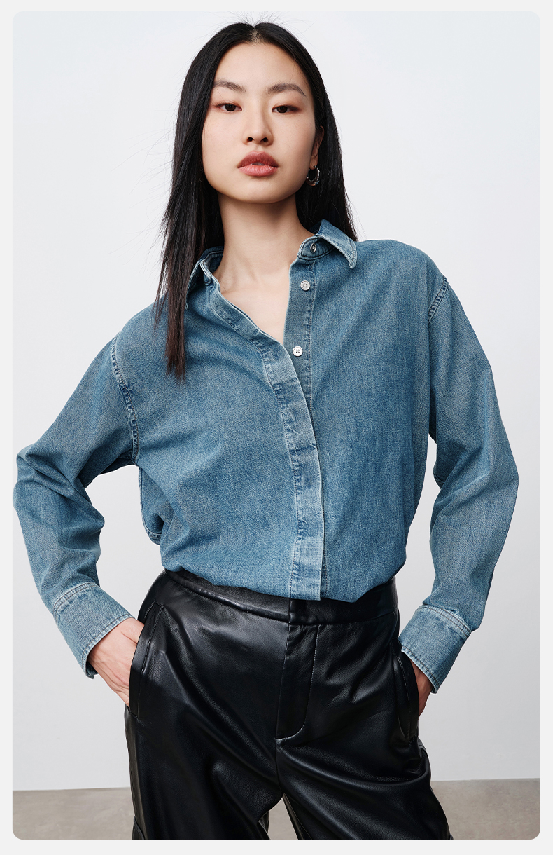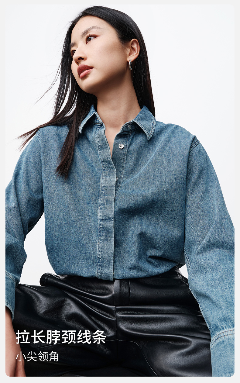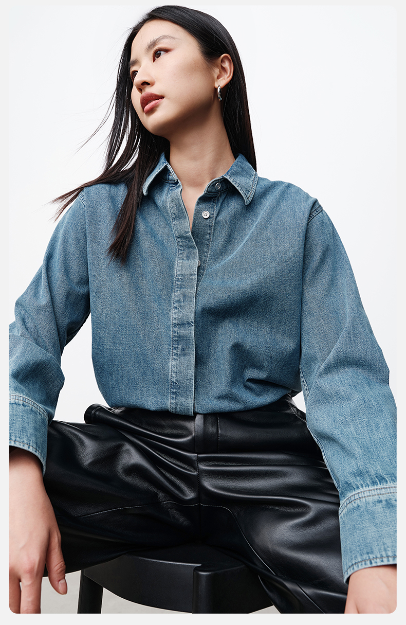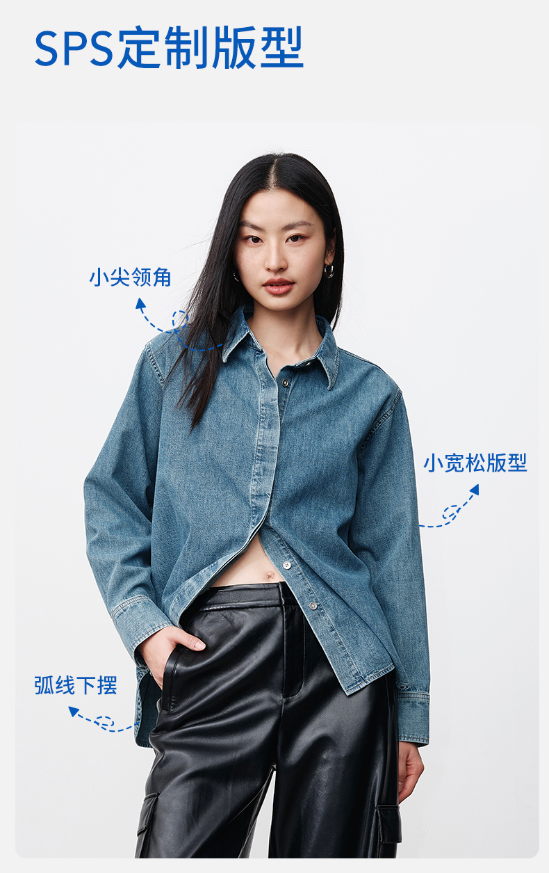 simplepieces春季新品SPS衬衫女全棉基础牛仔衬衫