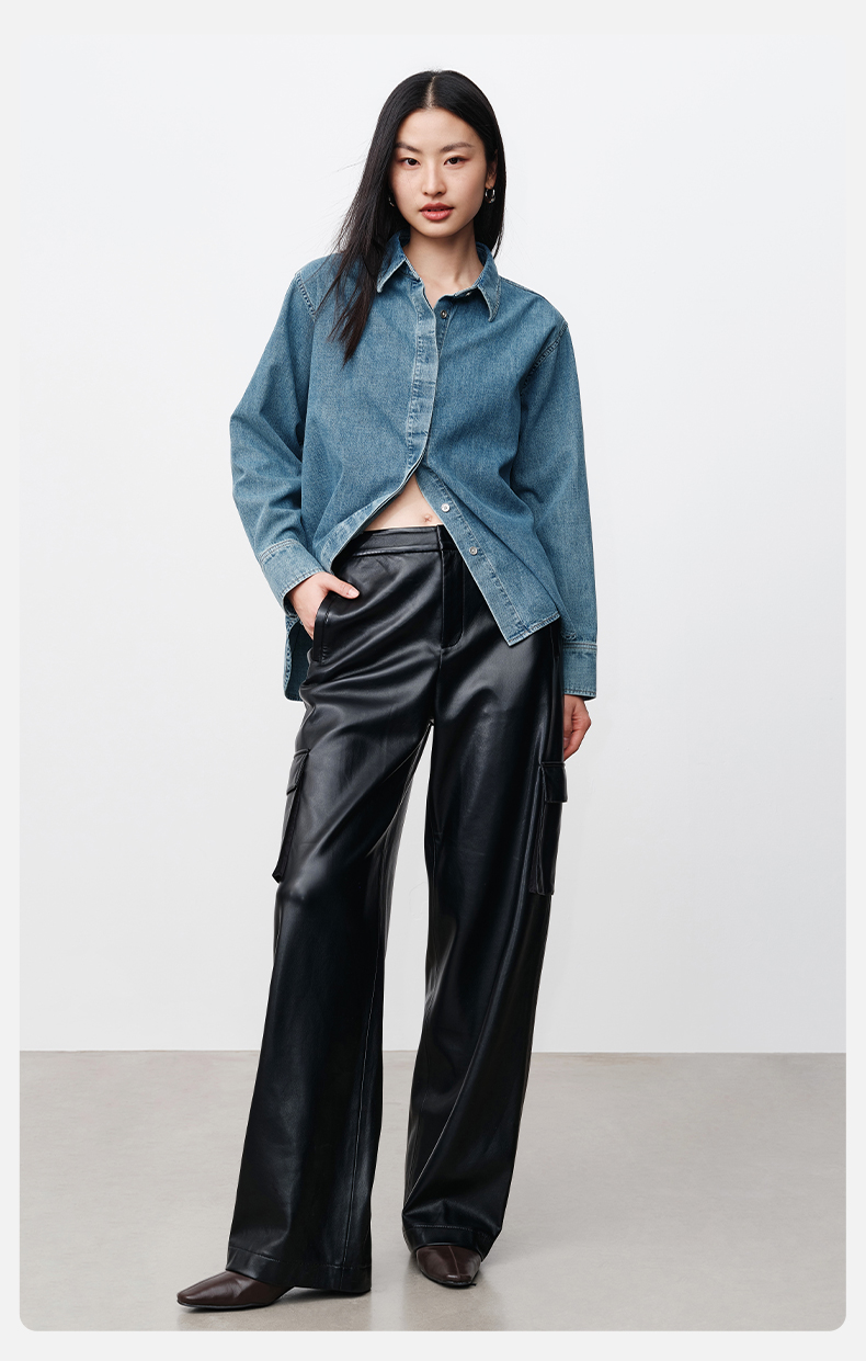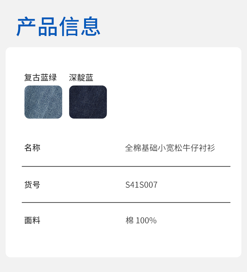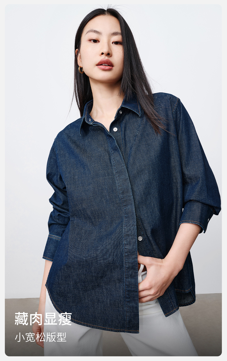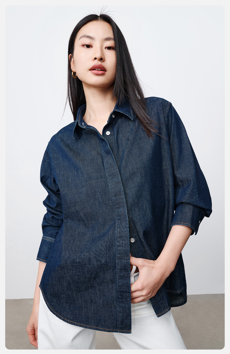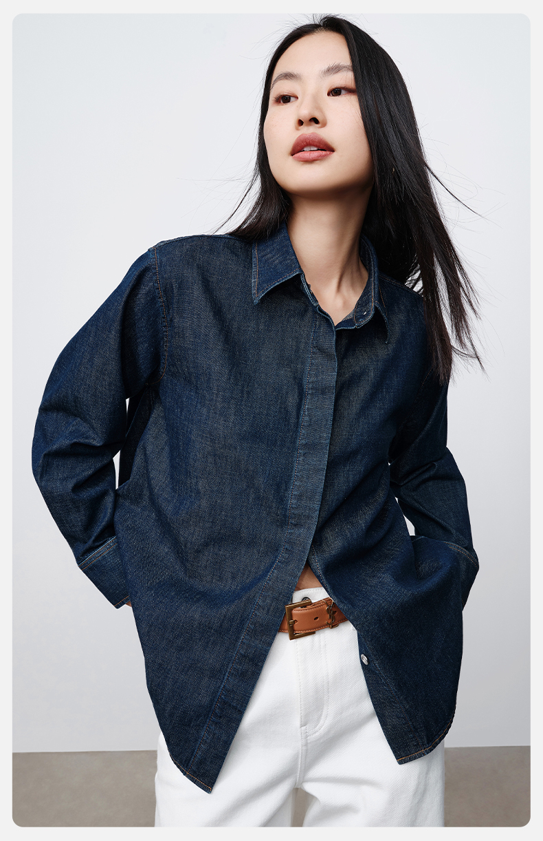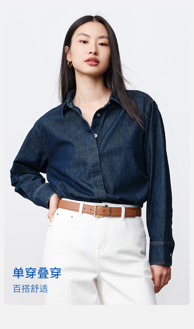 simplepieces春季新品SPS衬衫女全棉基础牛仔衬衫