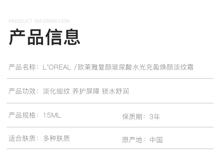 【专柜小样】法国 L'OREAL欧莱雅 20玻色因紧致淡纹面霜 15ml