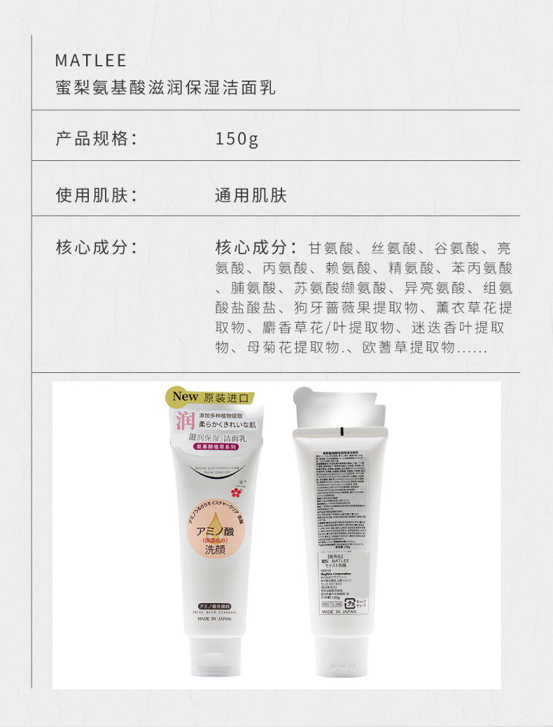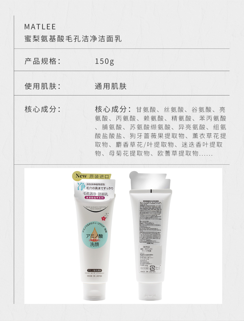 【中欧班列精选】日本蜜梨品牌氨基酸滋润保湿毛孔洁净洁面乳150g/支 授权直供