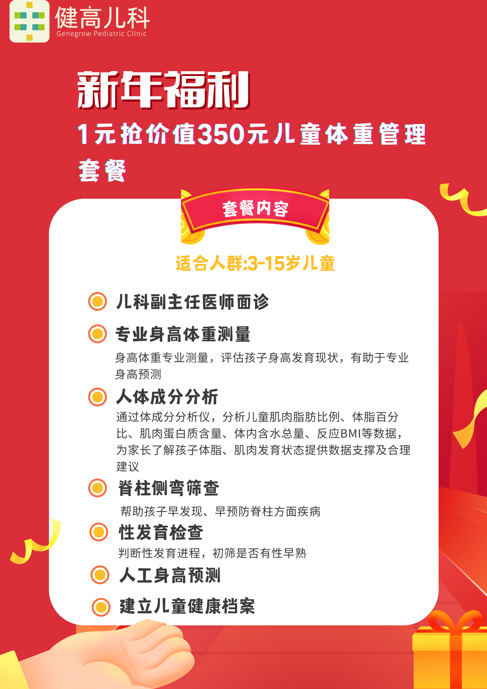 【新年福利】1元抢价值350元儿童体重管理套餐