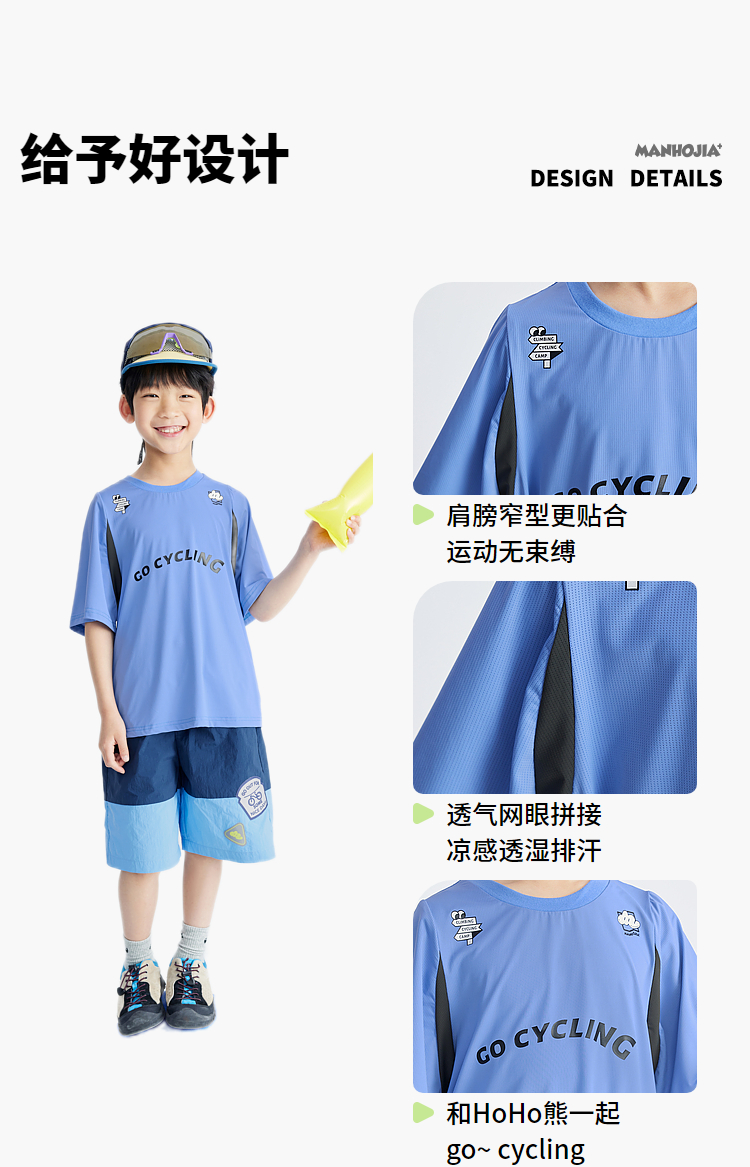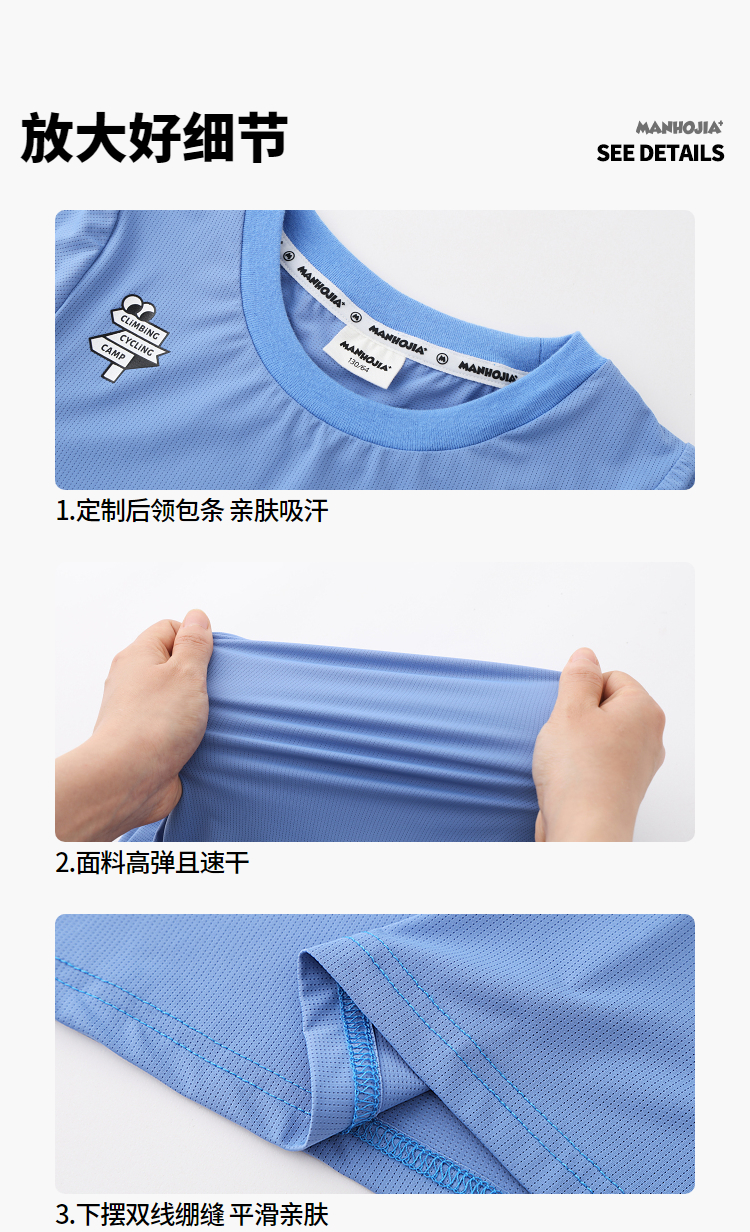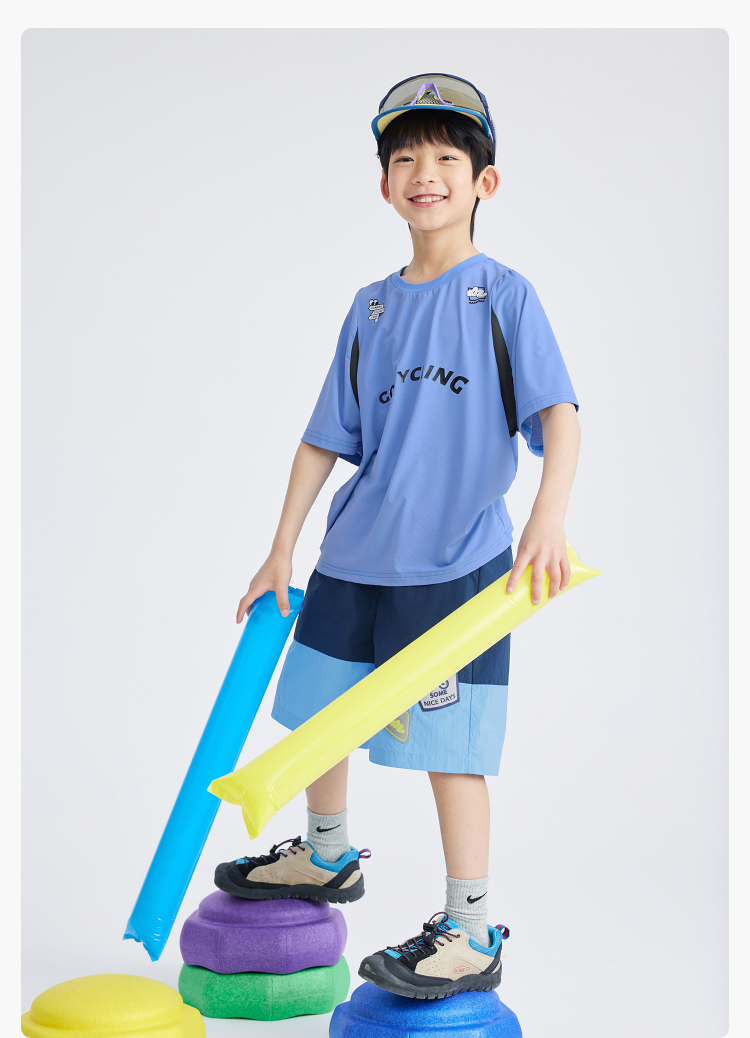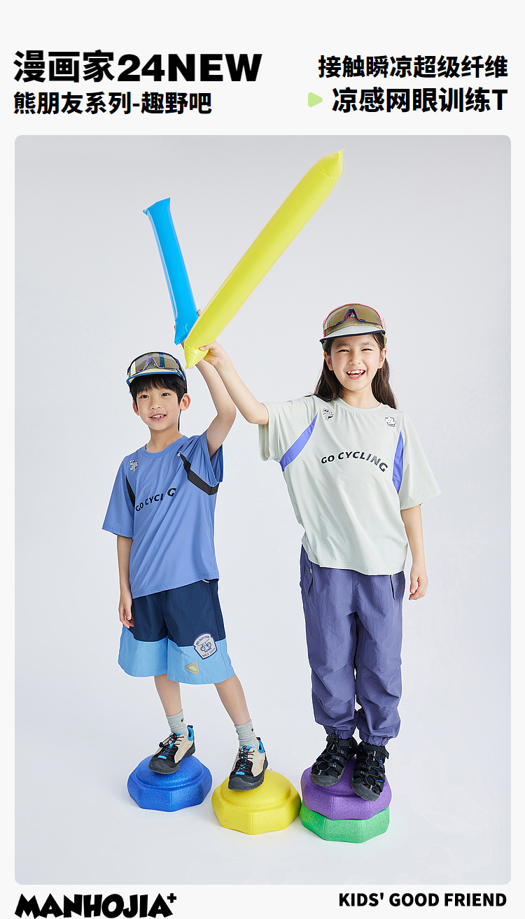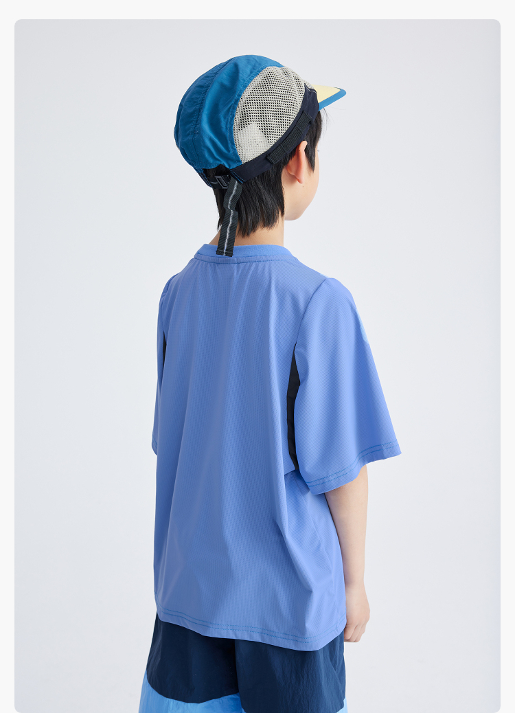 漫画家潮童装精灵点速干高弹瞬凉网眼拼接轻运动短袖男童女童T恤