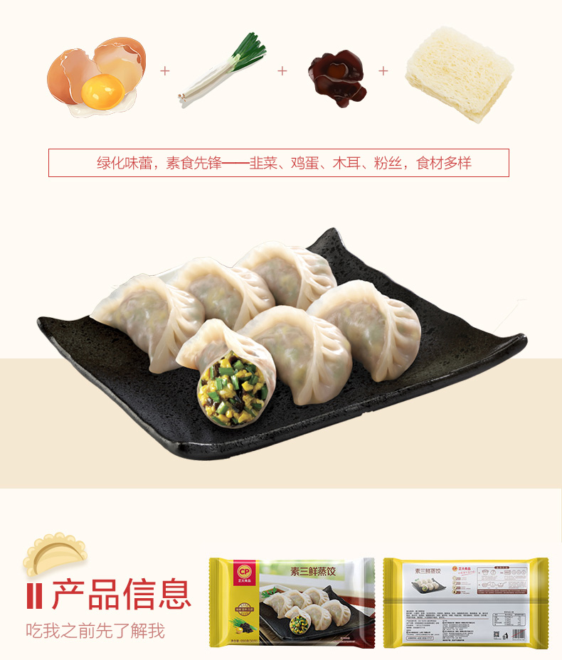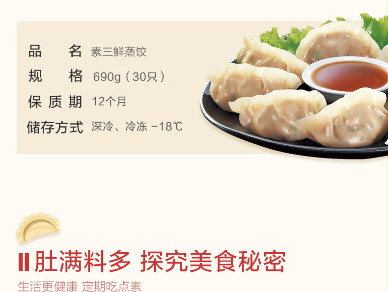正大(CP) 素三鲜蒸饺 690g 30只装 饺子 水饺 煎饺 火锅食材 早餐方便菜