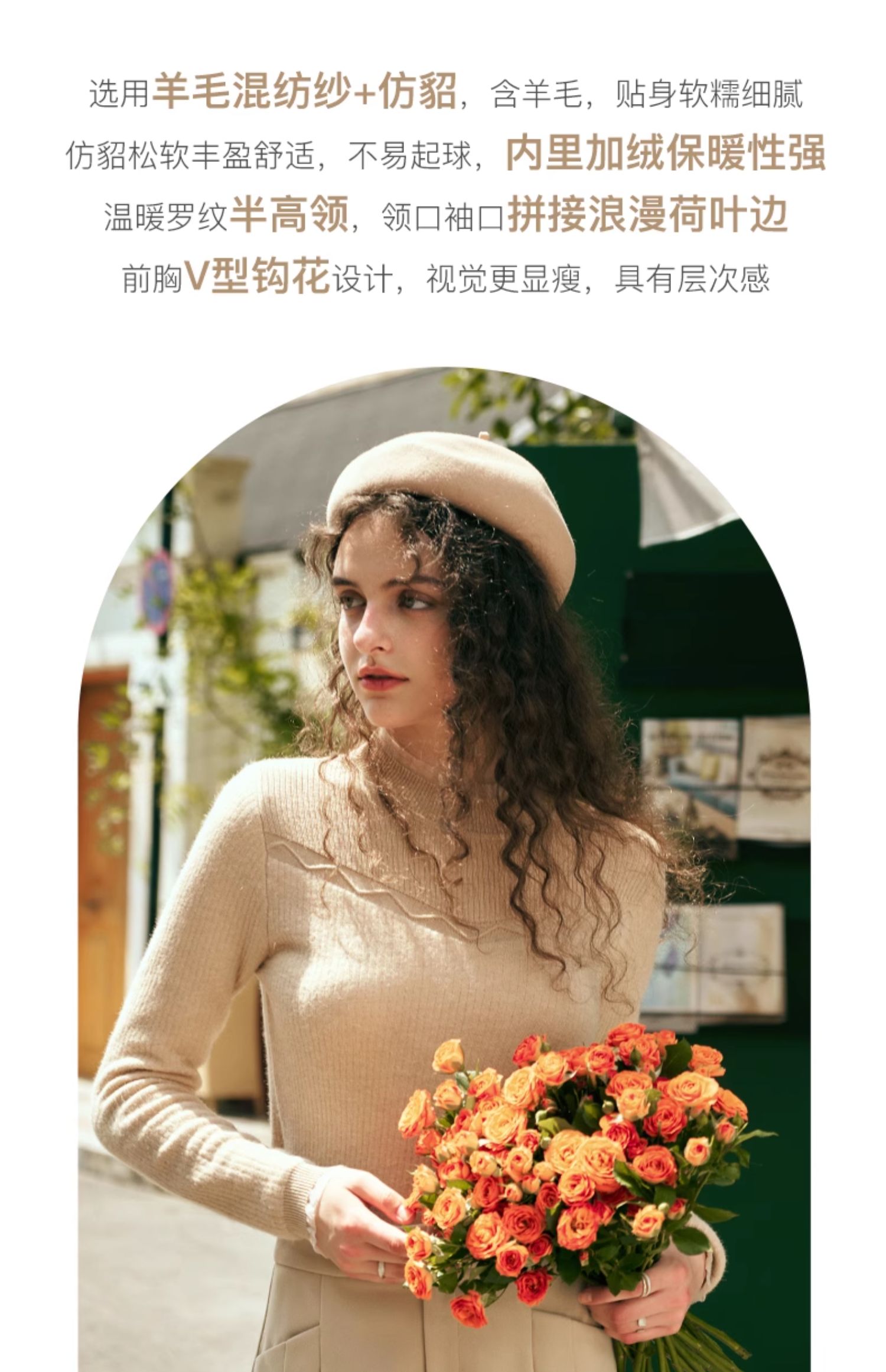 欧芮儿加绒打底毛针织衫慵懒暖和