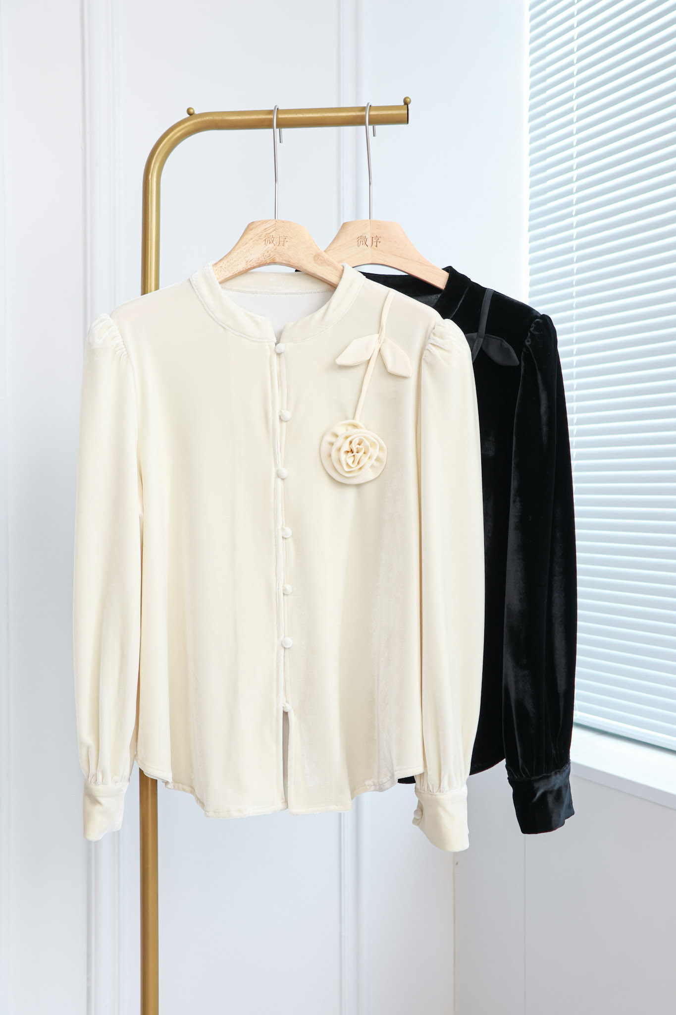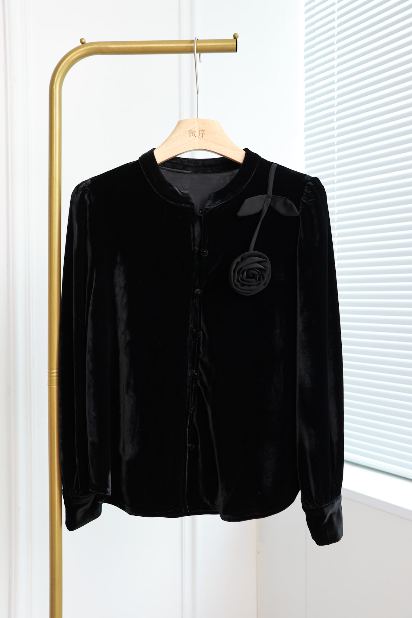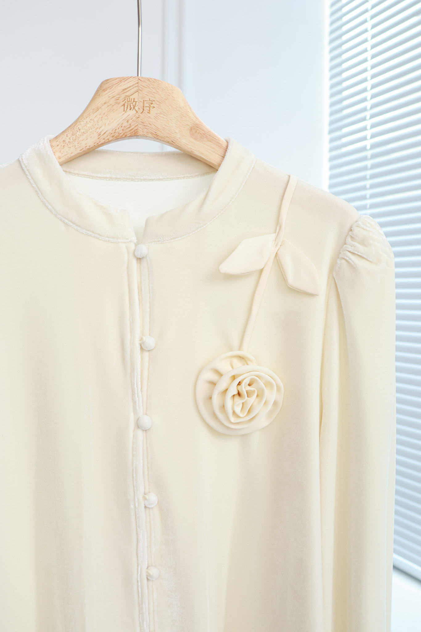 寻花漾|优雅立体盘花丝绒上衣