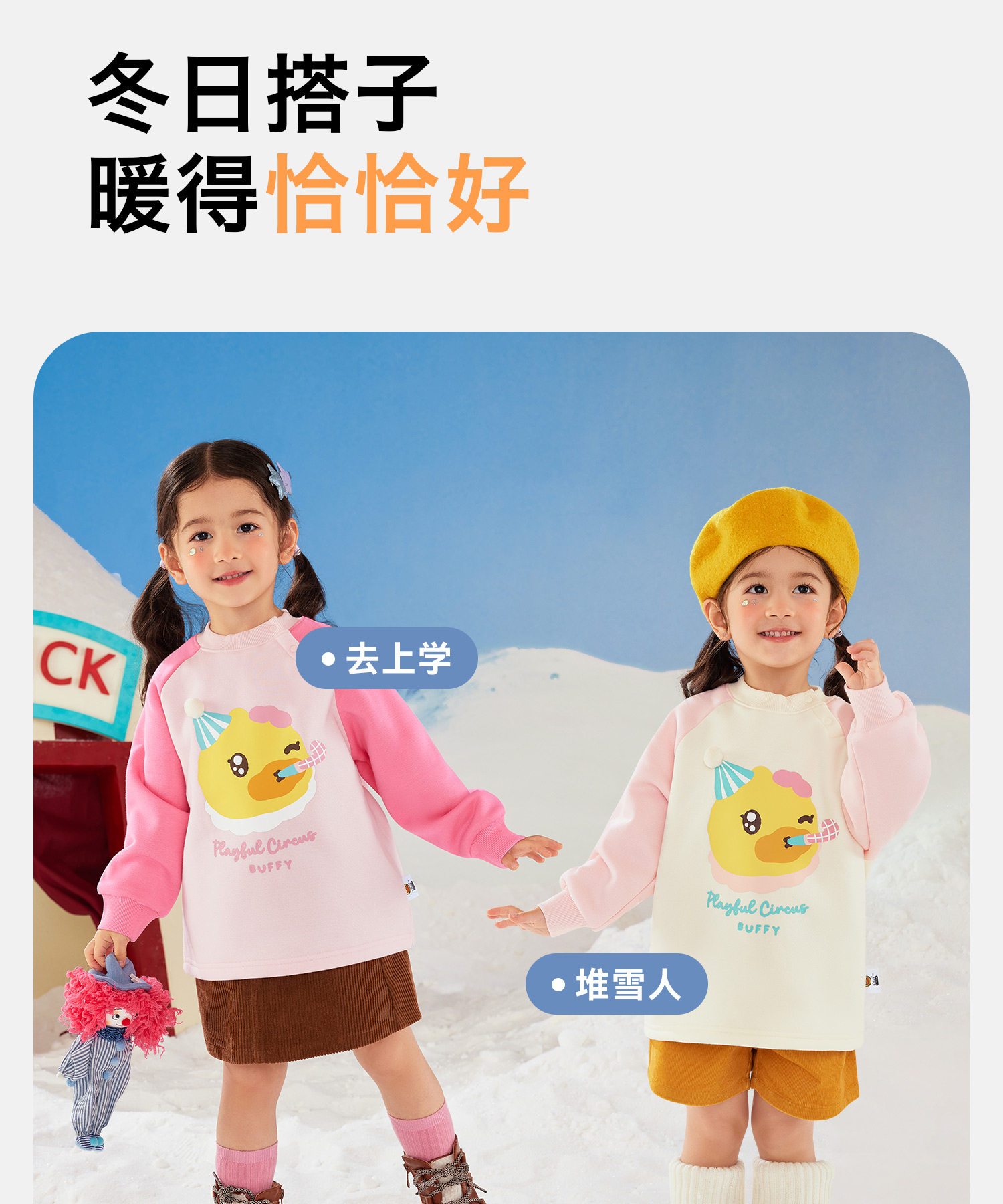 【抗菌加绒】B.Duck小黄鸭童装冬季保暖圆领卫衣90-130码 FF5631071