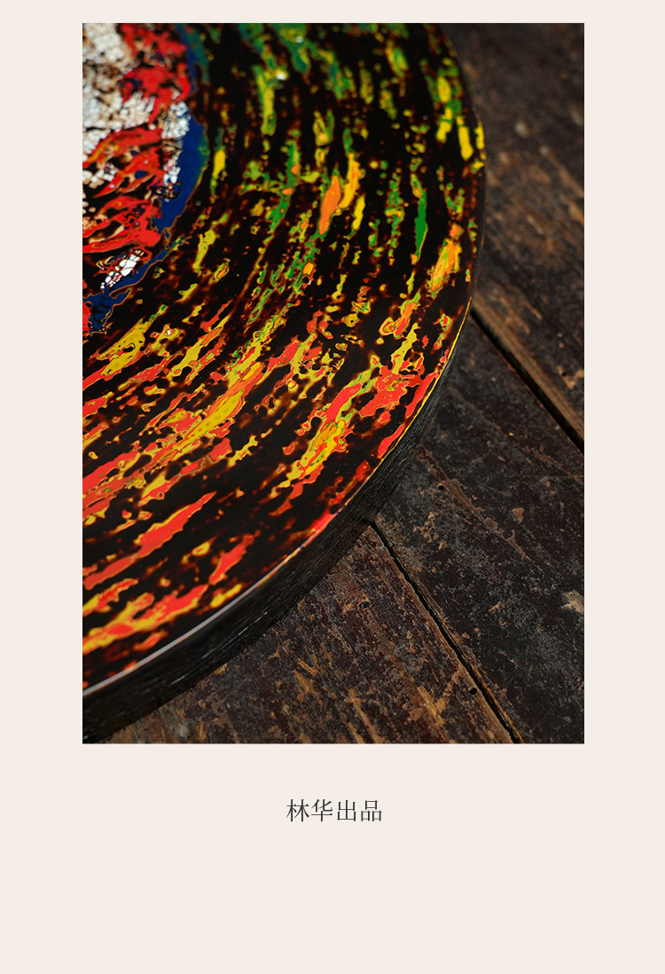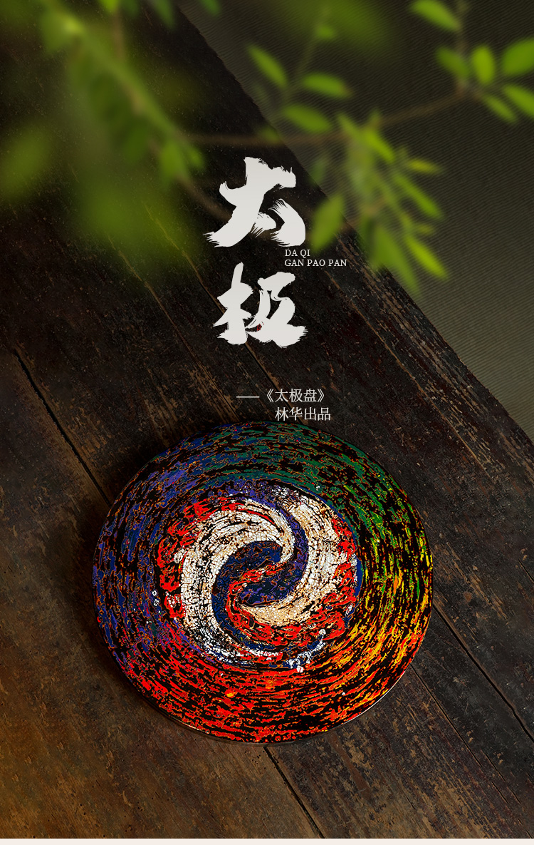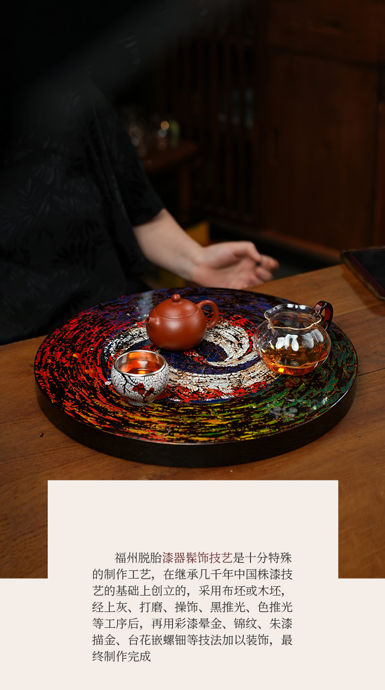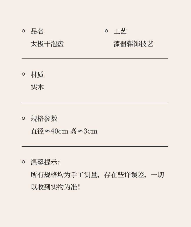 林华原创大漆太极干泡盘圆形托盘木盘子漆器大漆茶盘隔热干泡台壶垫