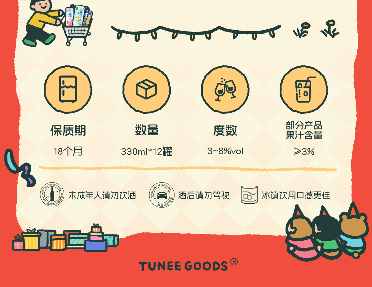 RIO锐澳 TUNEE GOODS联名圣诞礼盒 全家福礼盒330ml*12罐 清爽微醺 72小时发货