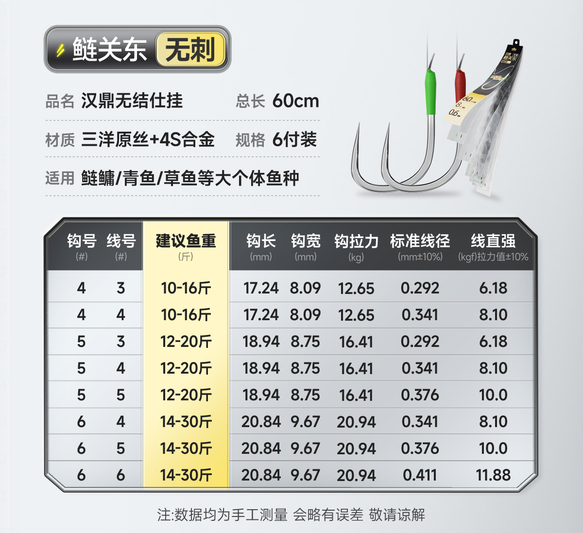 汉鼎无结子线双钩鲢关东子线钩鲢鳙青草鱼绑好成品子线钩有刺无刺