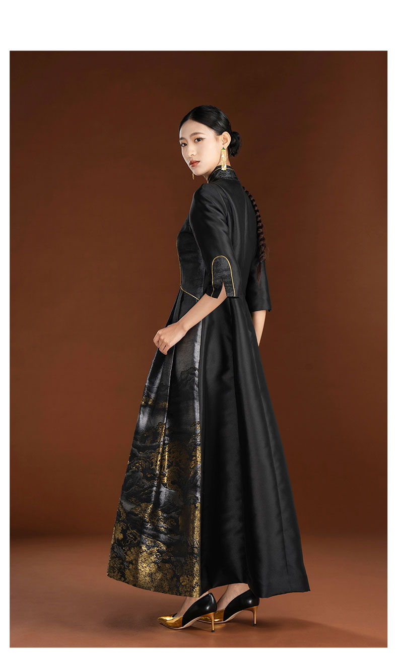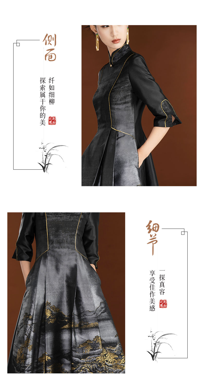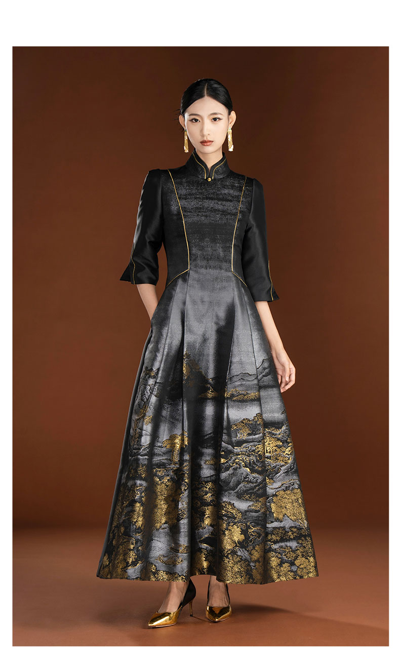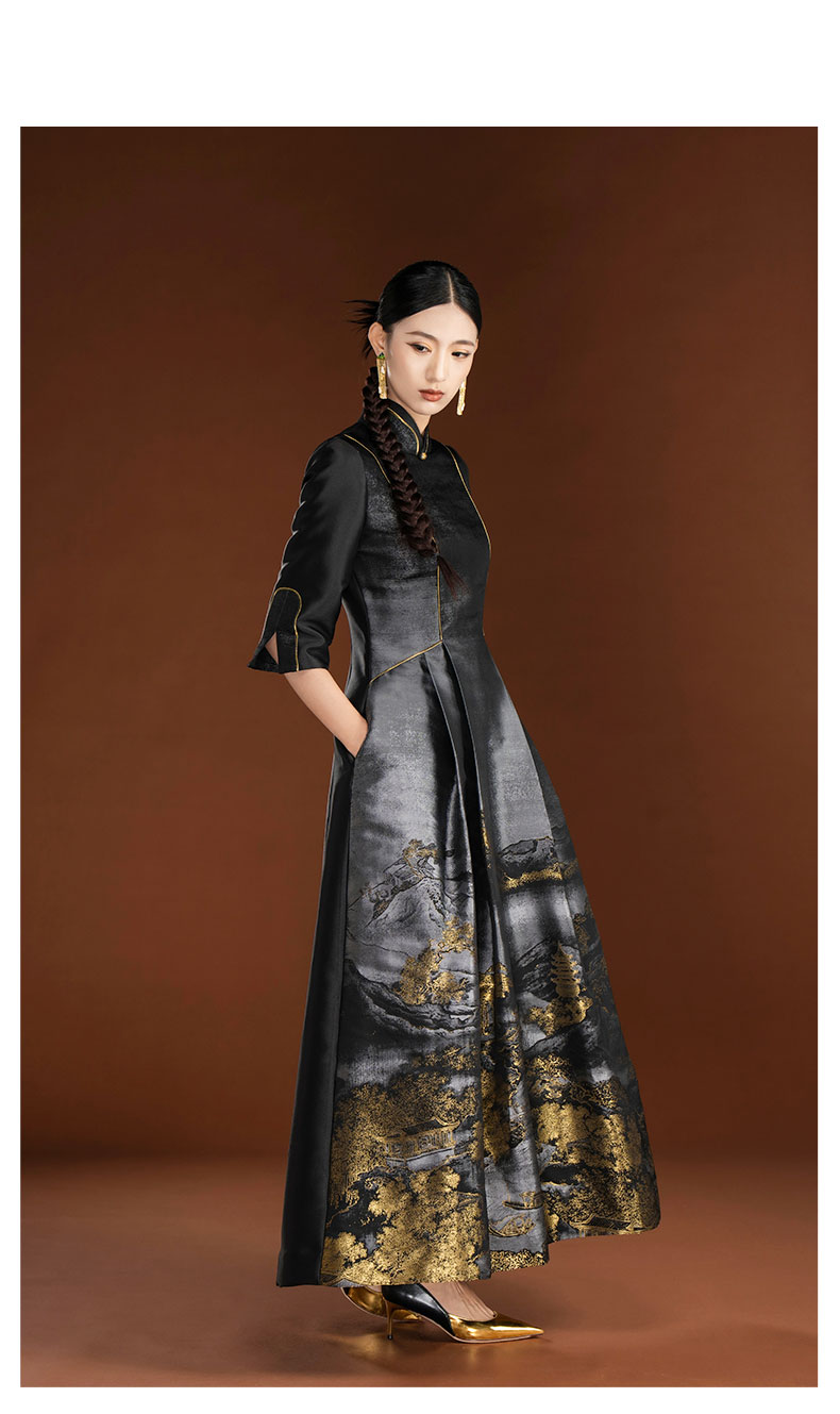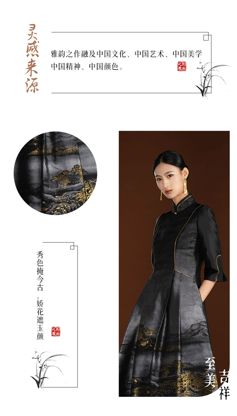 吉祥衣家宋锦国风提花复古经典新中式高端气质女装依诗取兴连衣裙