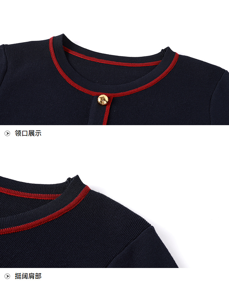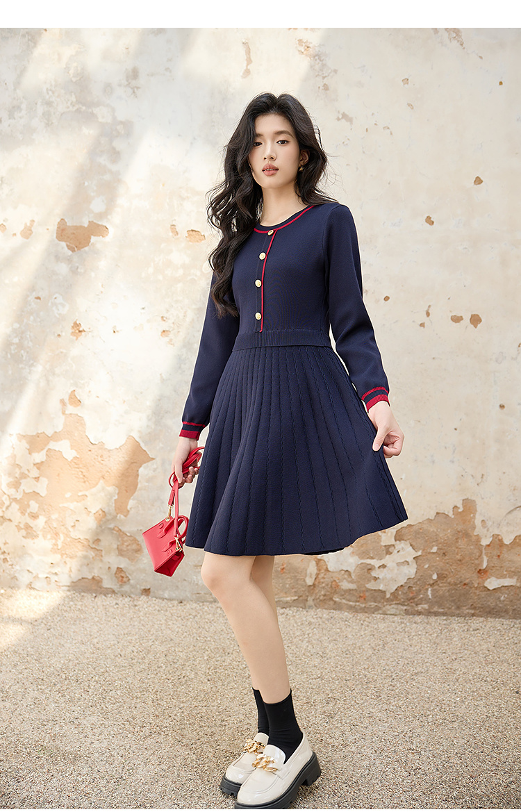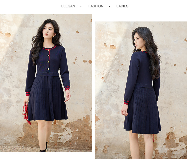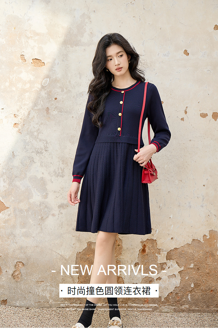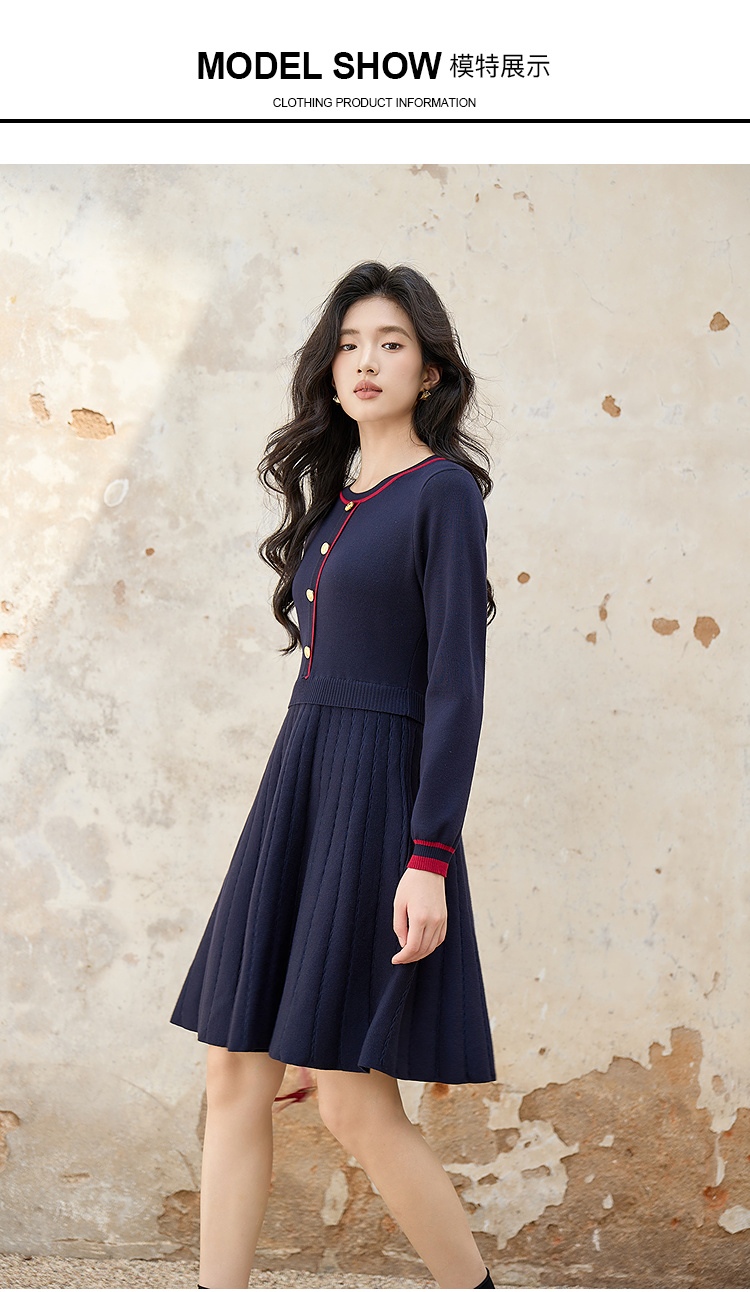 奢姿大码女装2025秋季胖妹妹时尚减龄学院风撞色镶边针织连衣裙9853869913