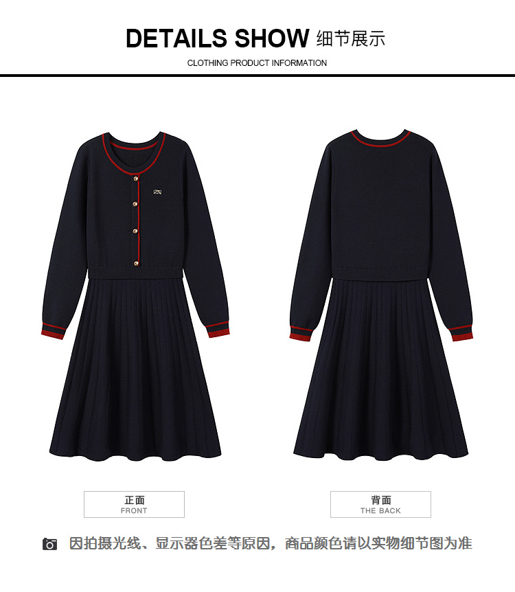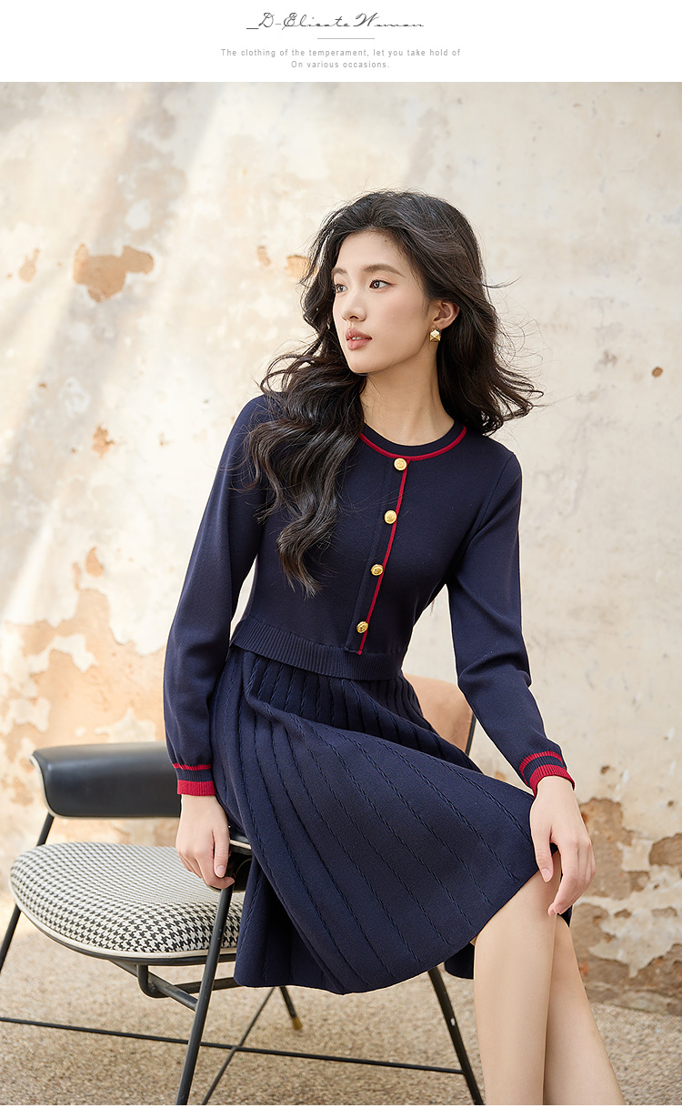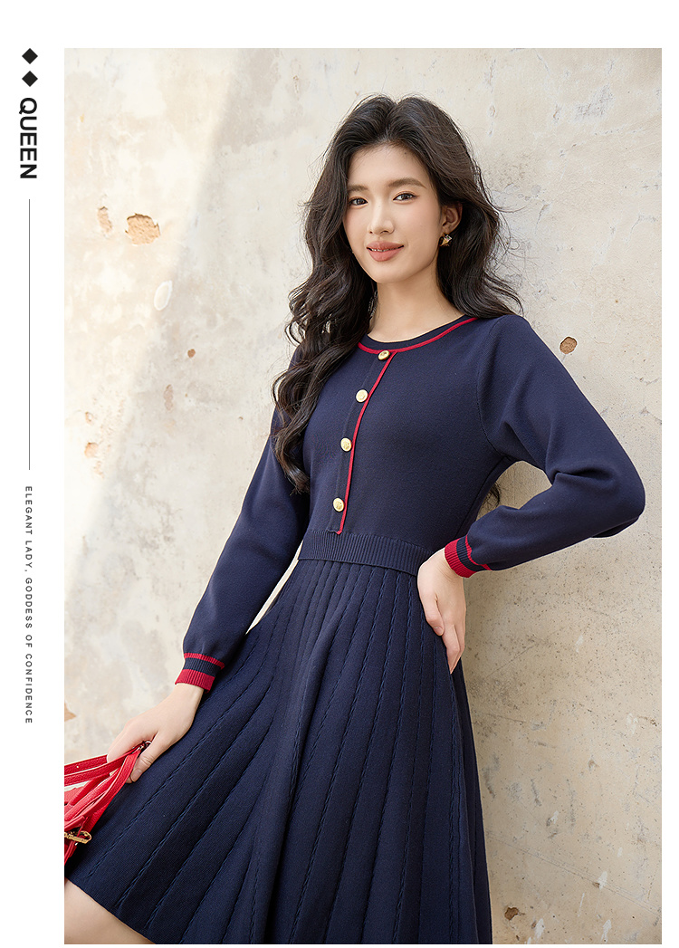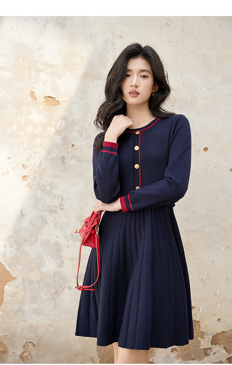 奢姿大码女装2025秋季胖妹妹时尚减龄学院风撞色镶边针织连衣裙9853869913