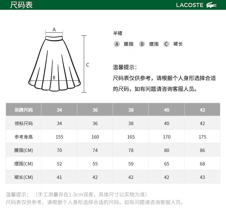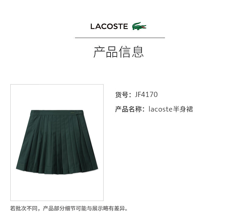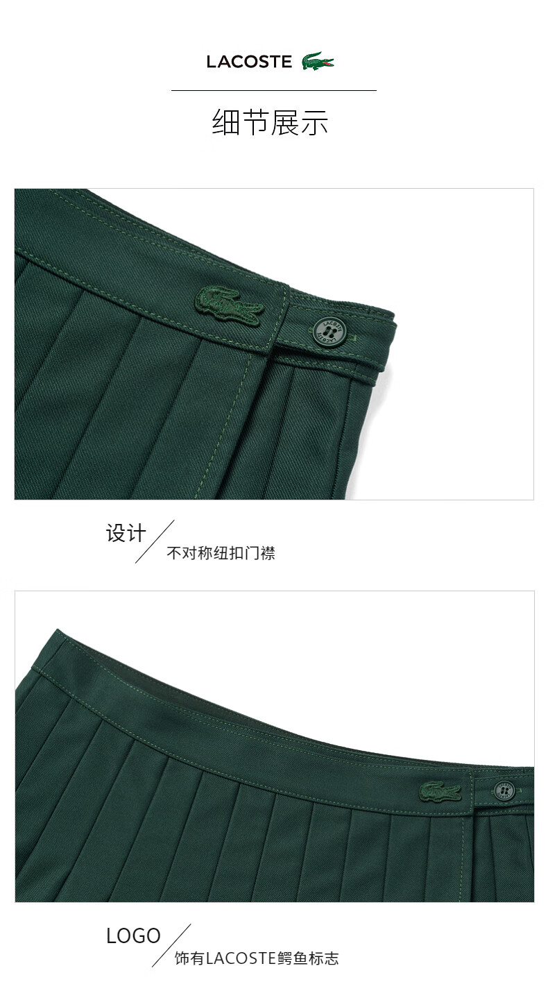 Lacoste法国鳄鱼女装新款时尚百搭百褶裙半身裙短裙JF4170-10