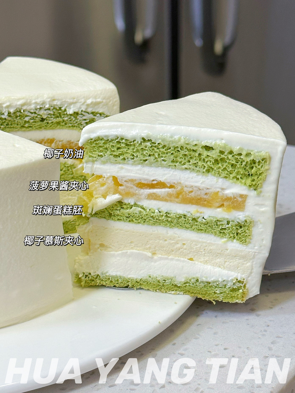 搭配菠萝果酱夹心、椰子慕斯