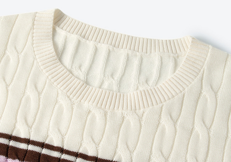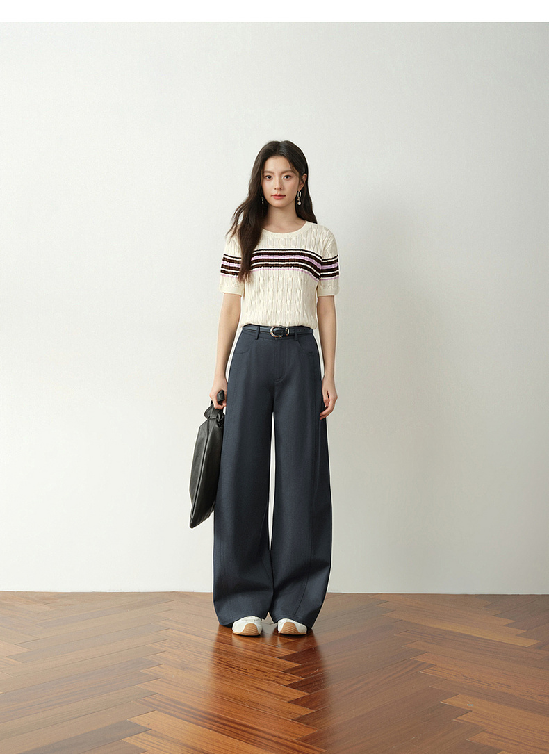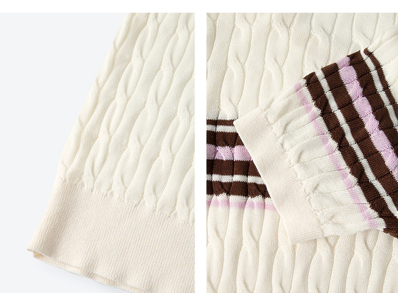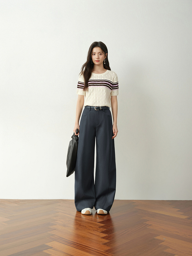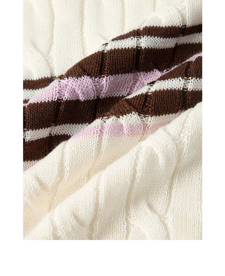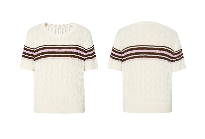 【严选】诗凡黎撞色条纹绞花针织衫2026春夏新款设计感软糯亲肤短袖上衣女7H2230471