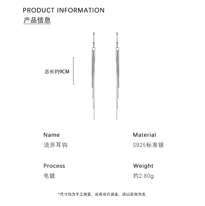 【依娜】子佩集s925纯银流苏长款耳钩【ZYXS-F621】2208