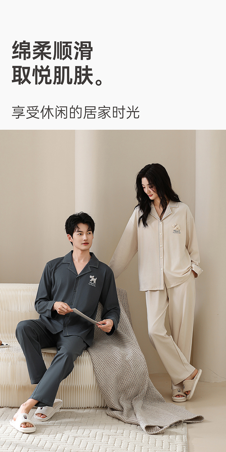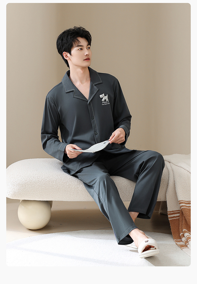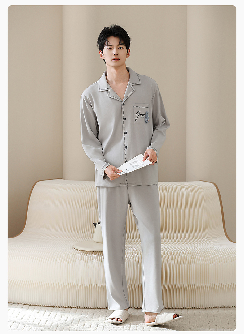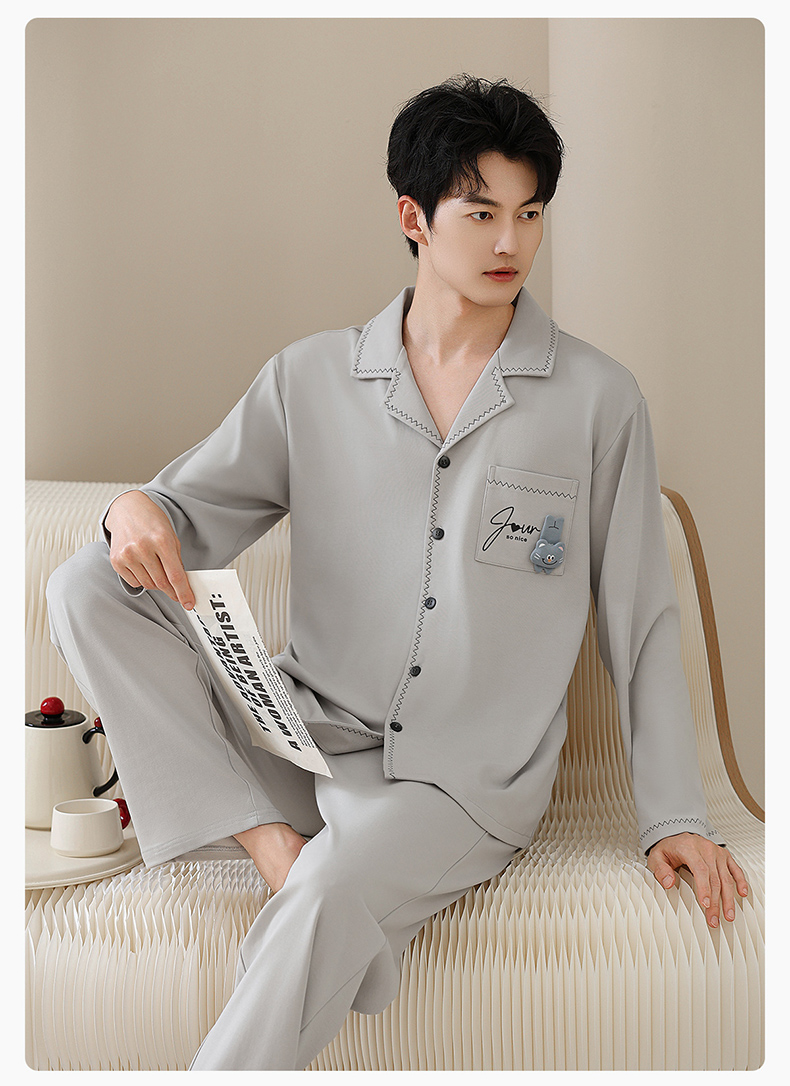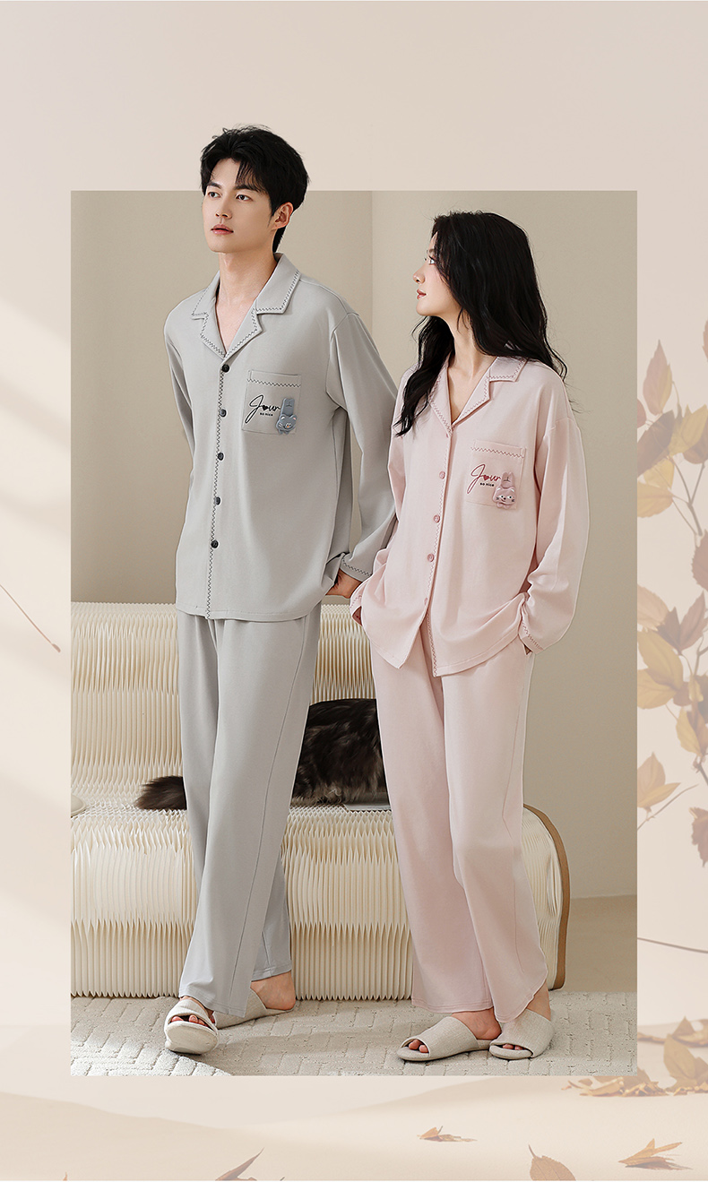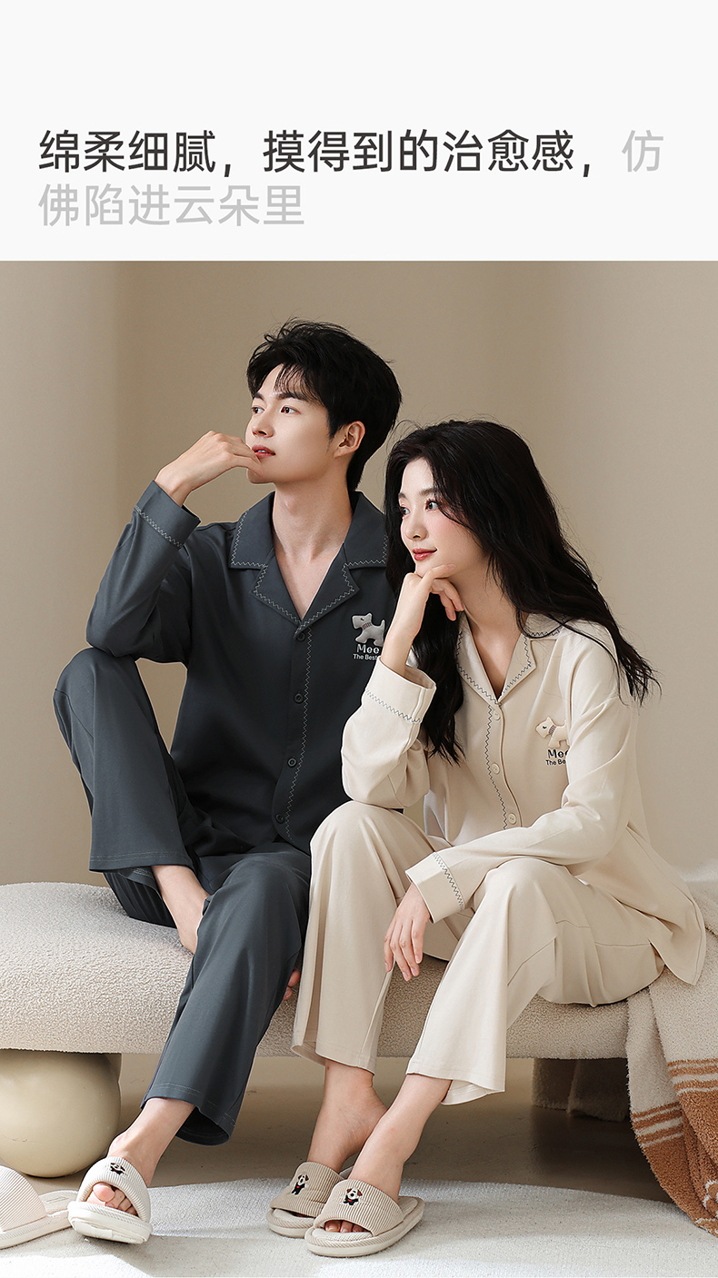 爱帝双面棉长袖睡衣莱赛尔棉情侣家居服套装