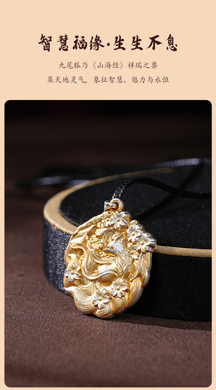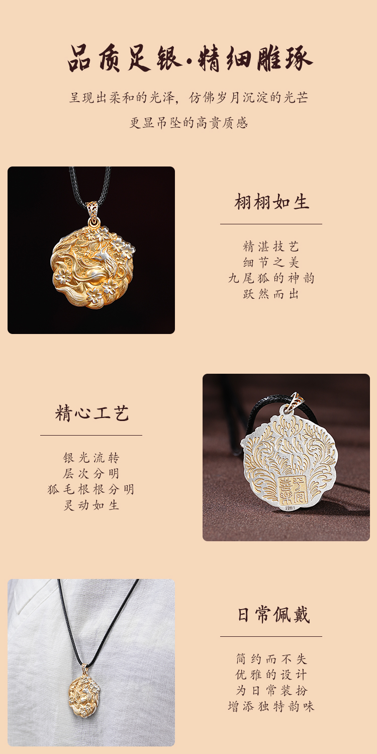 足银九尾狐吊坠高高级感灵狐挂坠复古项链挂件小众