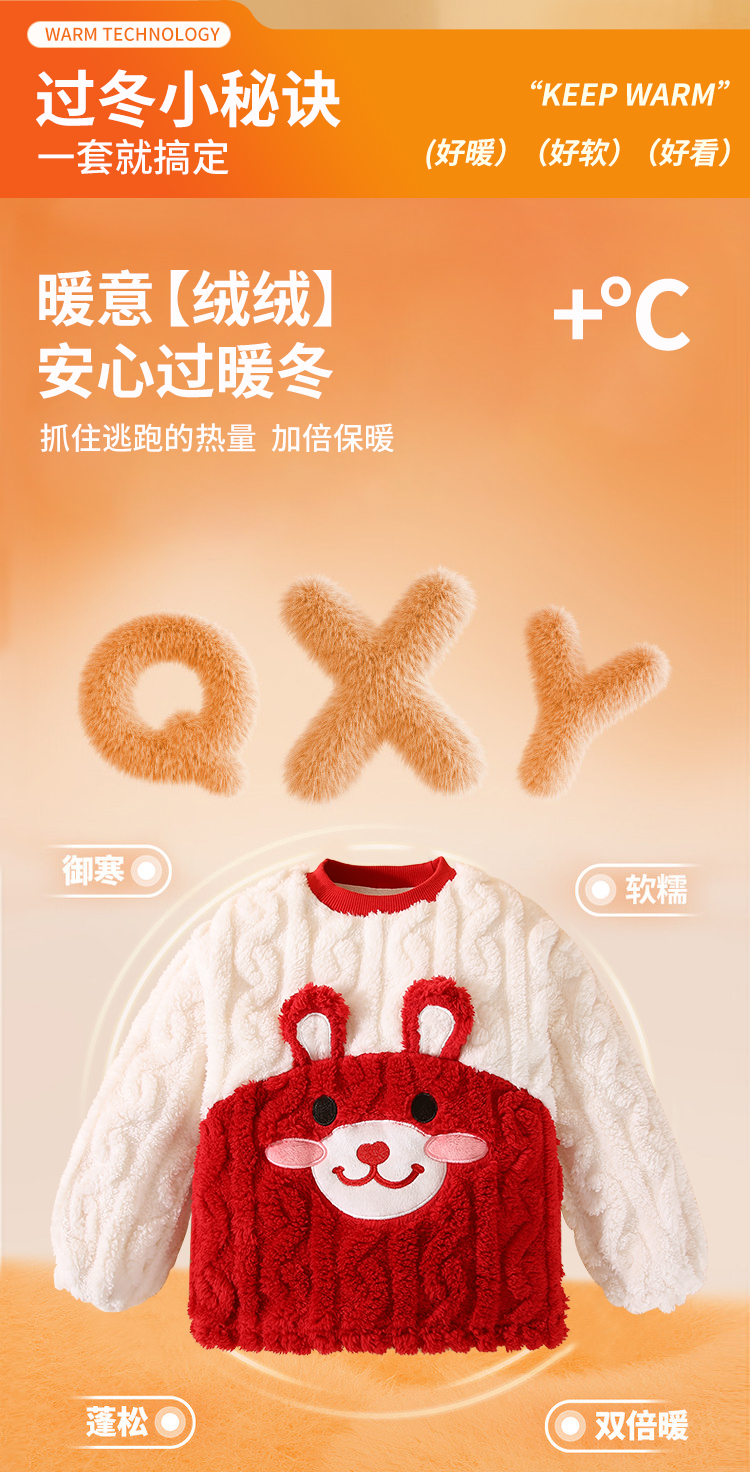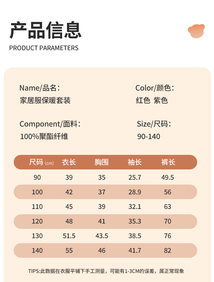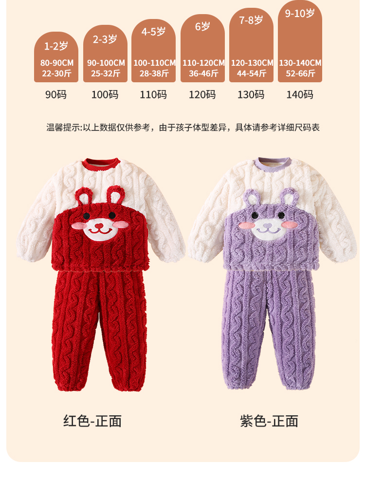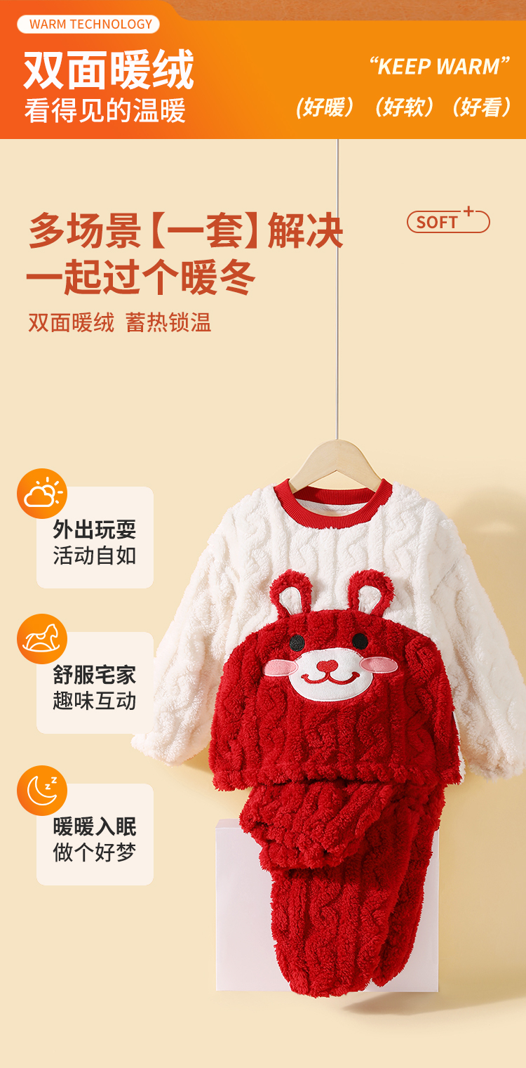 【清仓捡漏】【90-120】【精典泰迪】男女童双面暖绒家居服套装