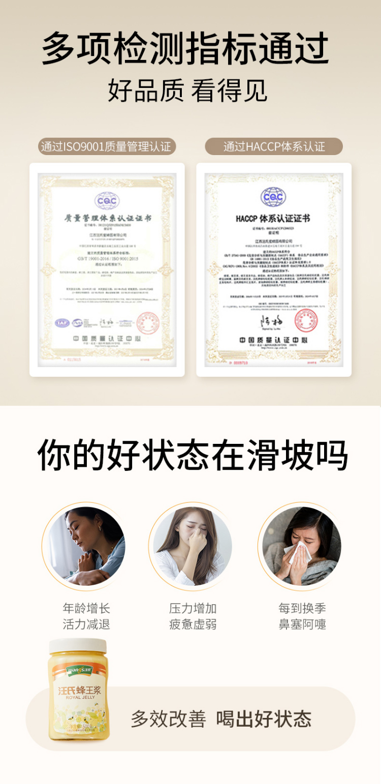 汪氏蜂王浆营养高活性青海采集低产高品质瓶装食用蜂皇浆500g