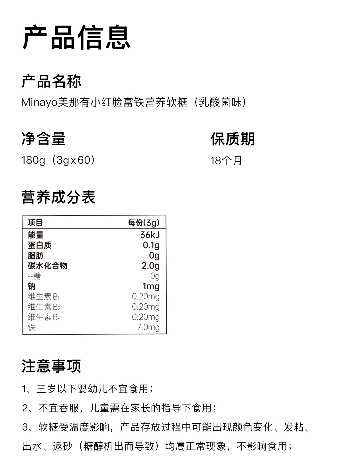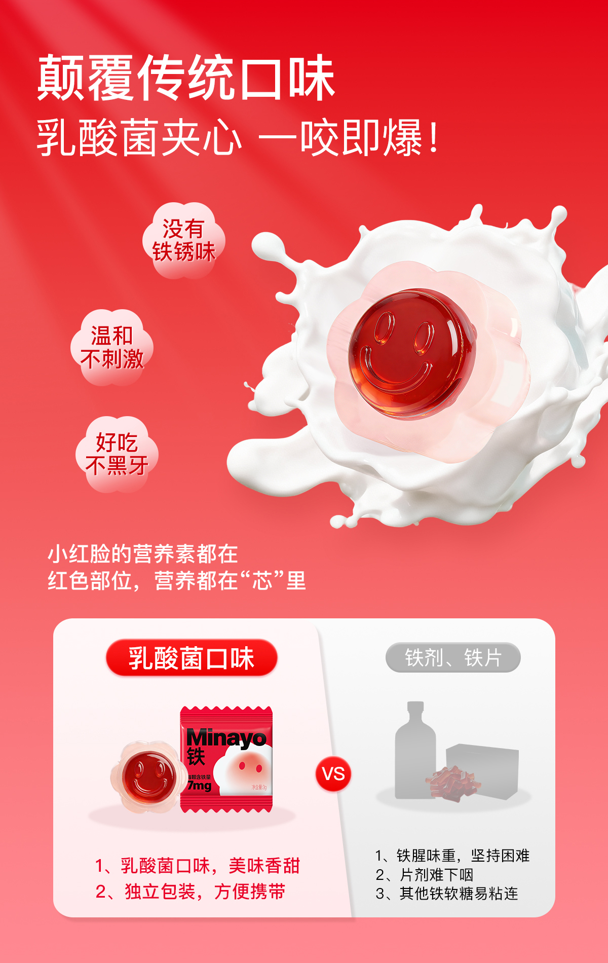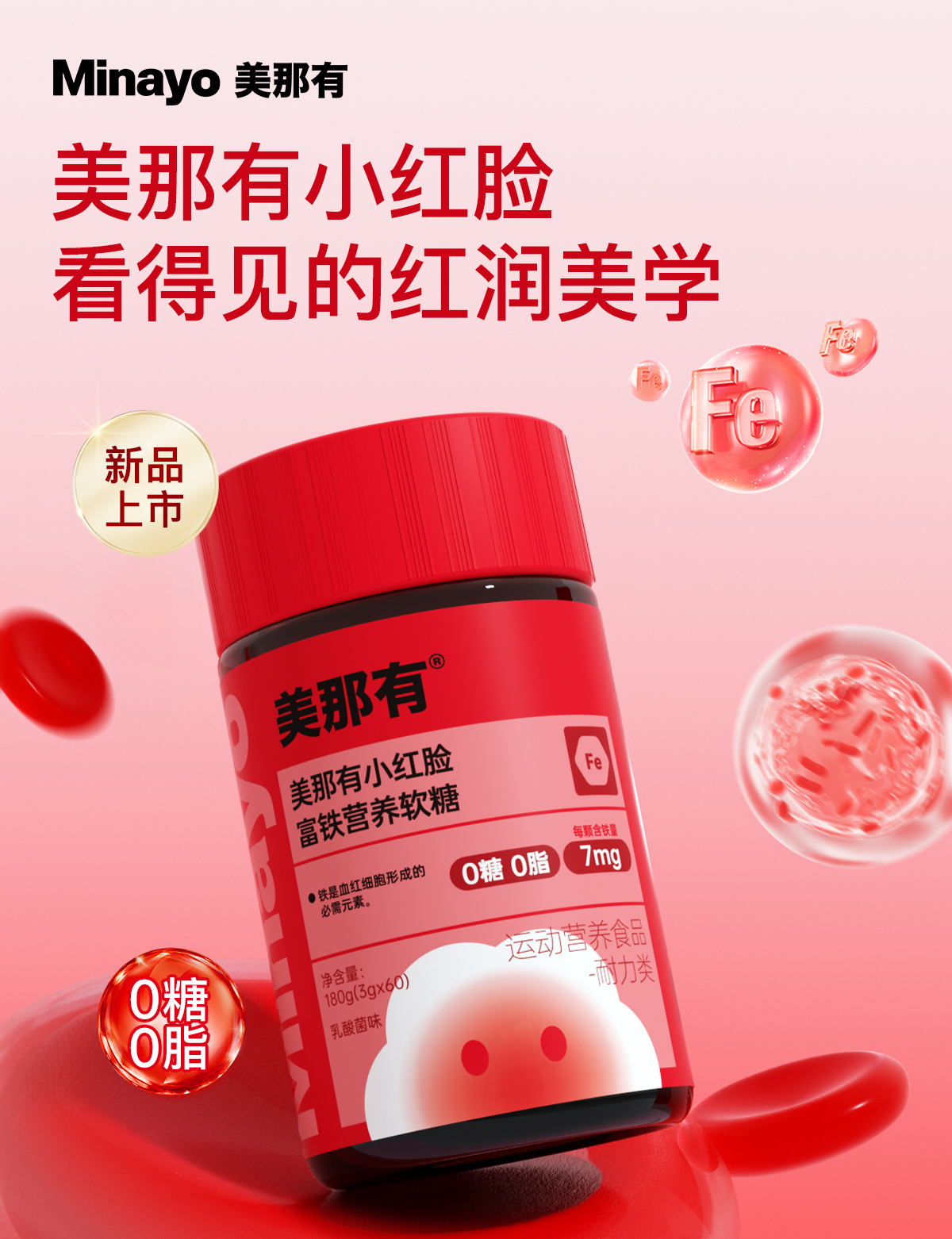 新口味!Minayo美那有 7mg 小红脸富铁营养软糖养乐多夹心口味