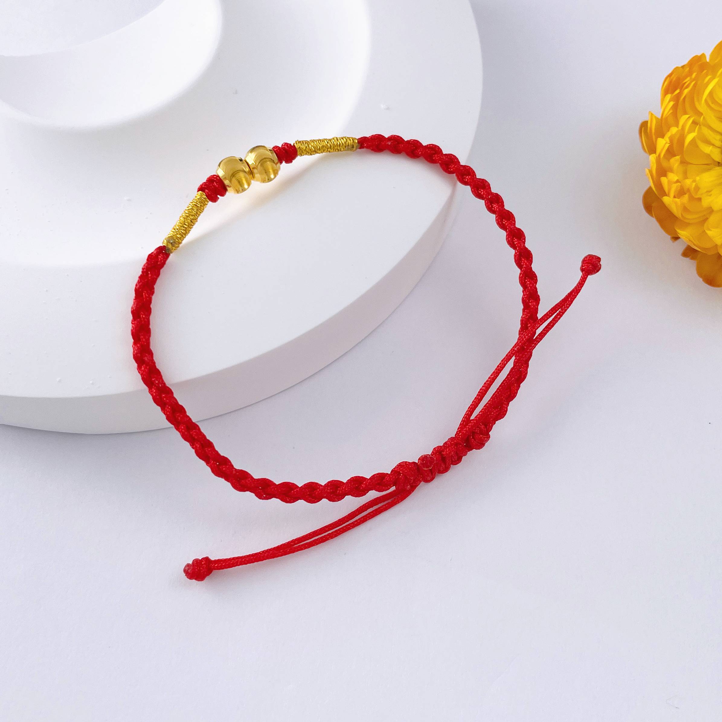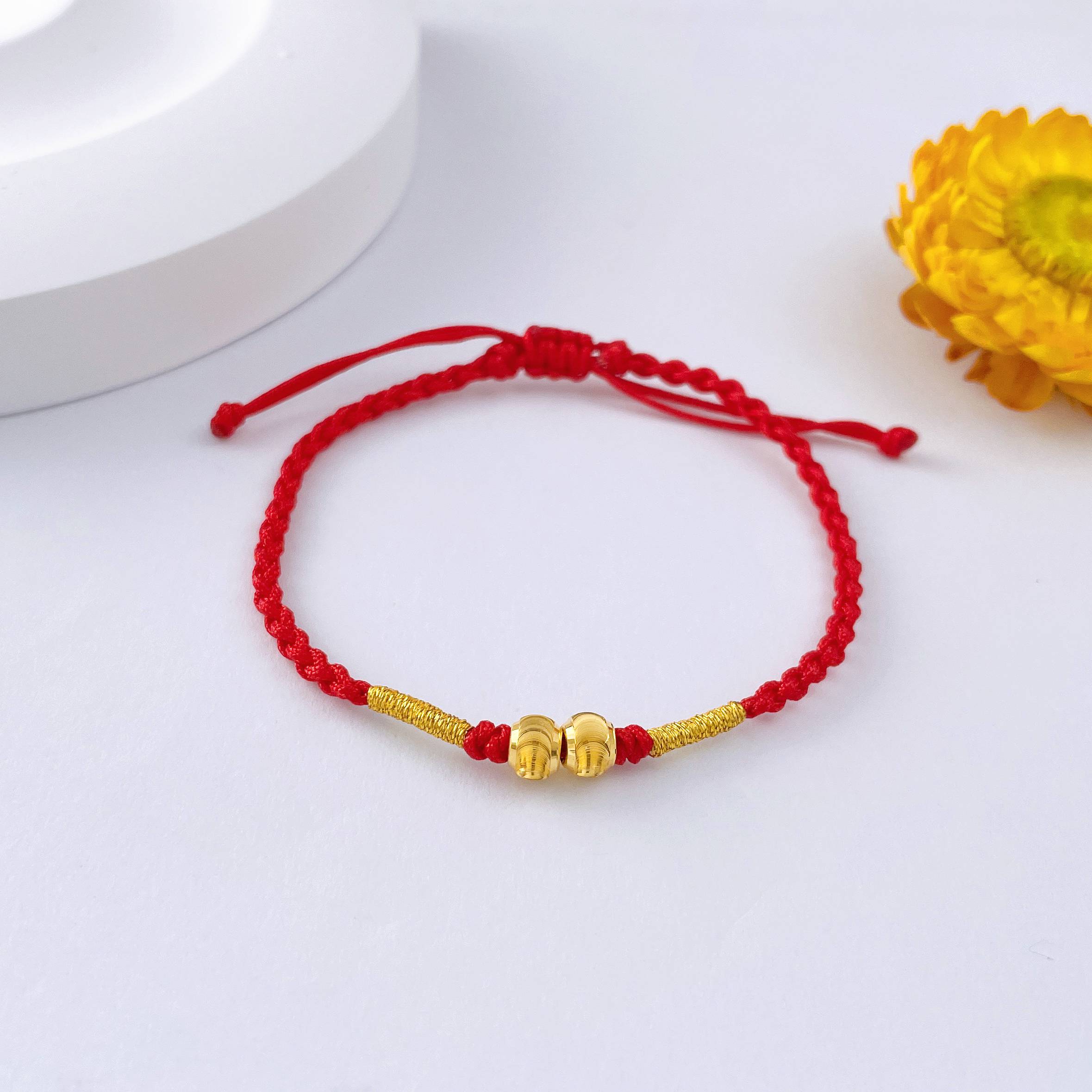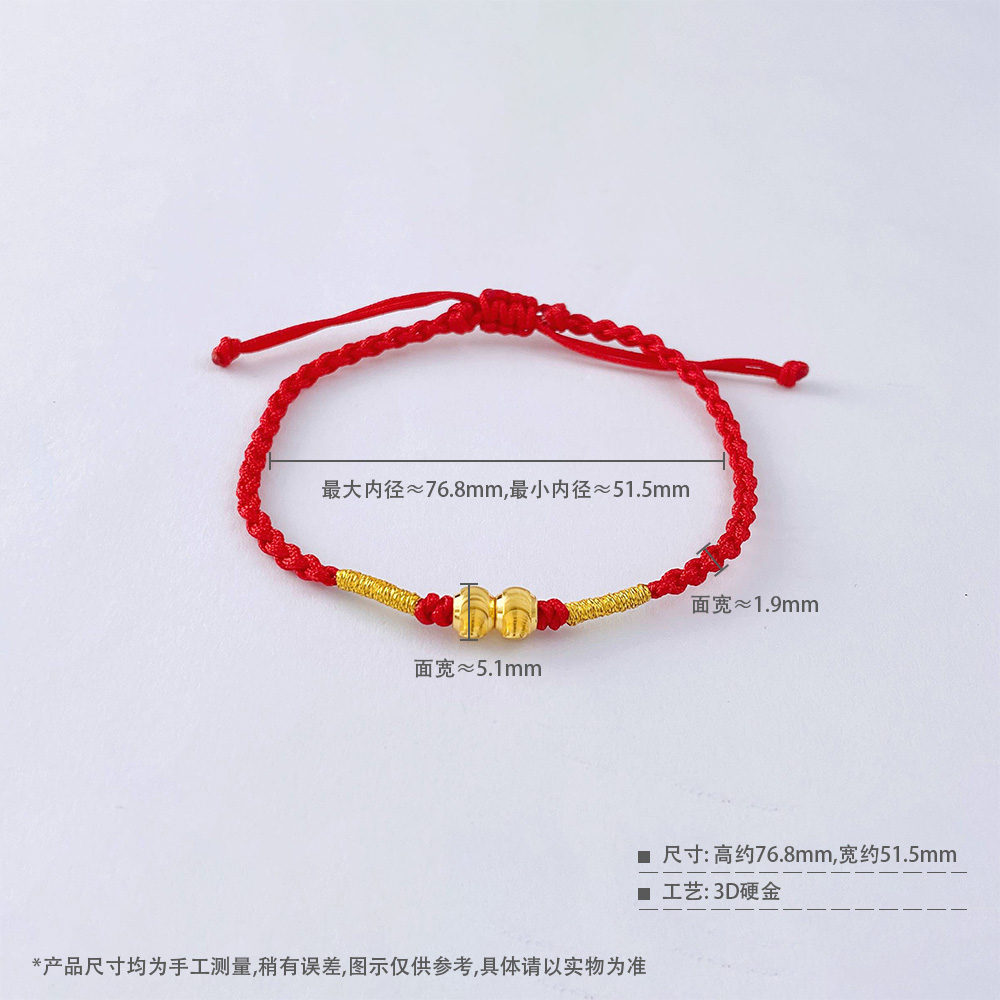 【定价黄金】足金 3D硬金空心猫眼珠手串可调节幸运红绳成品手串(珠约5.1mm)(AA3DSC00457)(预售产品下单后不退款不退货不换货不补差价)(预售产品下单后不退款不退货不换货不补差价)