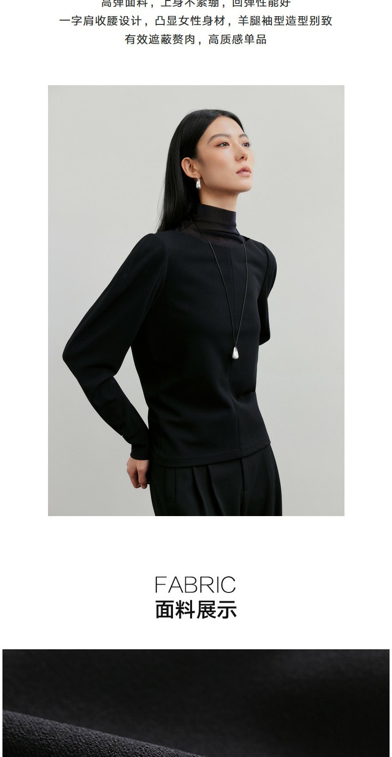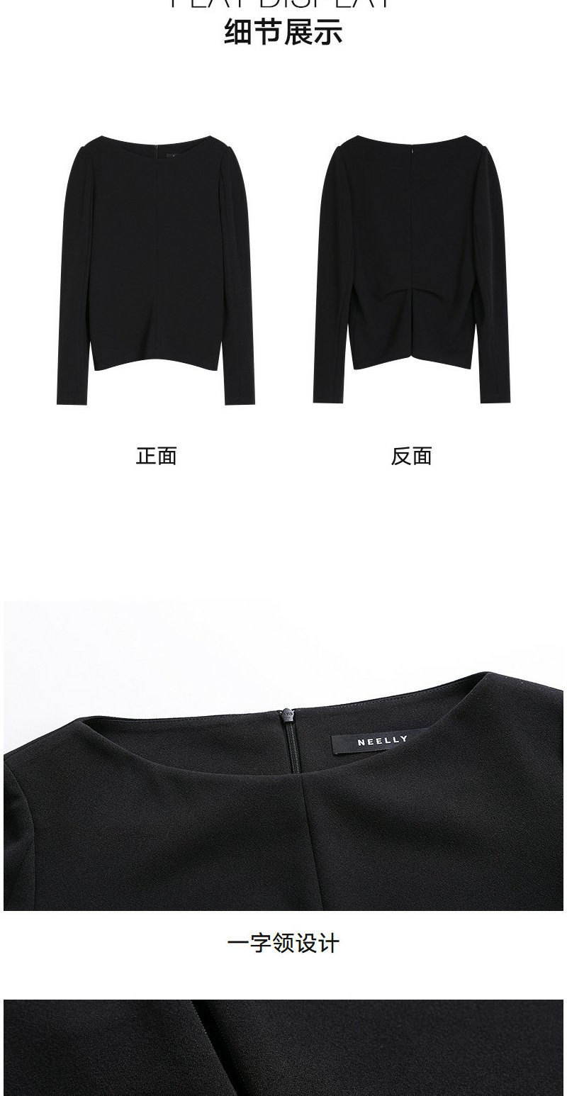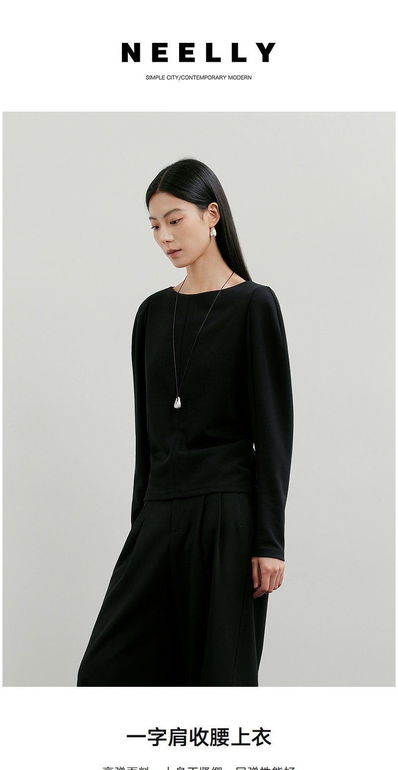 NEELLY纳俪商场同款春新款一字肩叠穿收腰长袖女气质优雅套头上衣N26011R01011