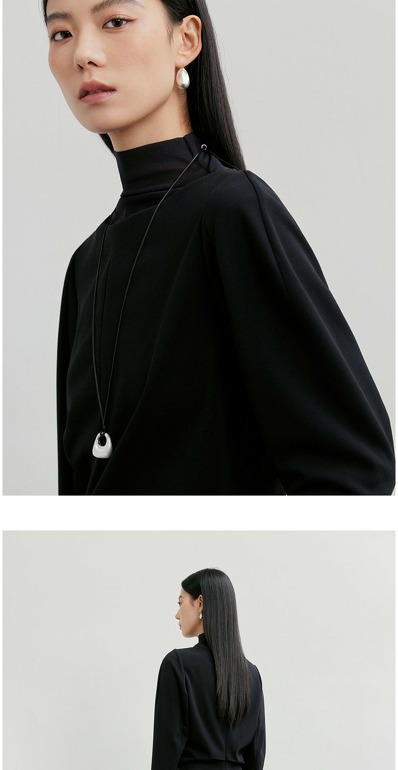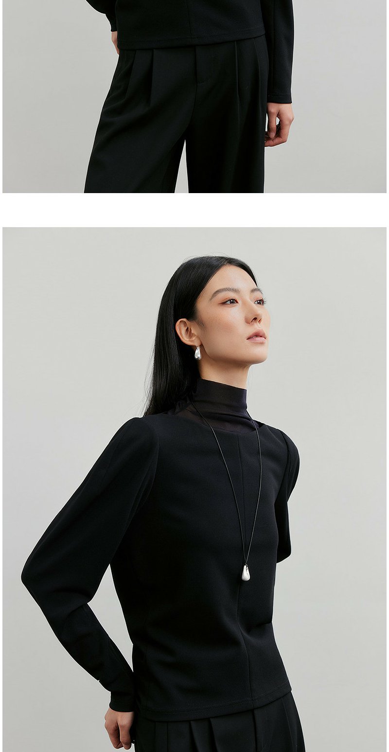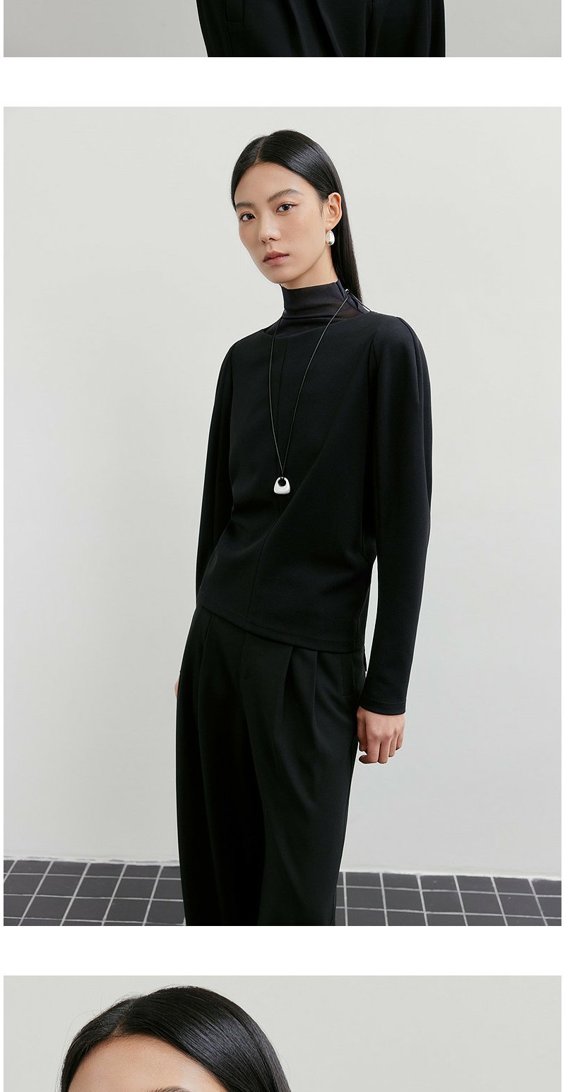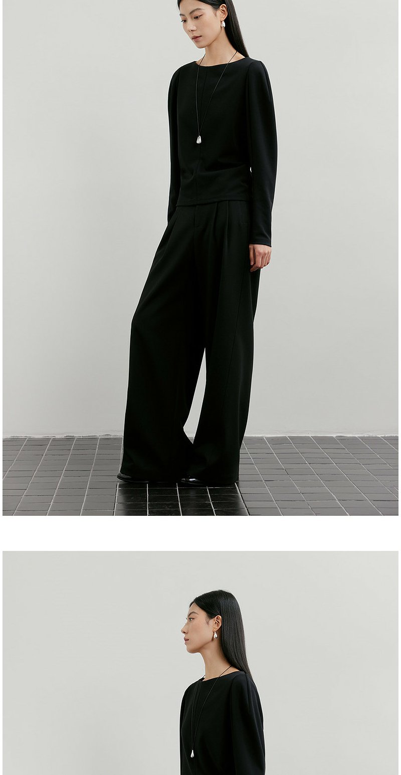 NEELLY纳俪商场同款春新款一字肩叠穿收腰长袖女气质优雅套头上衣N26011R01011