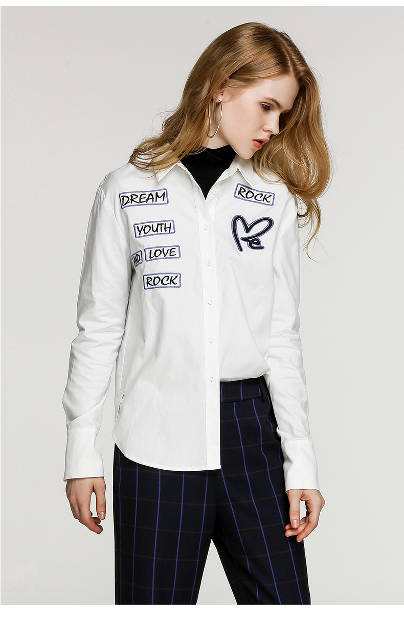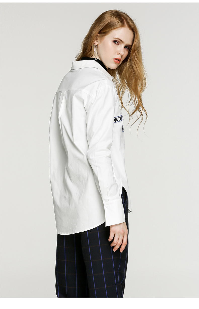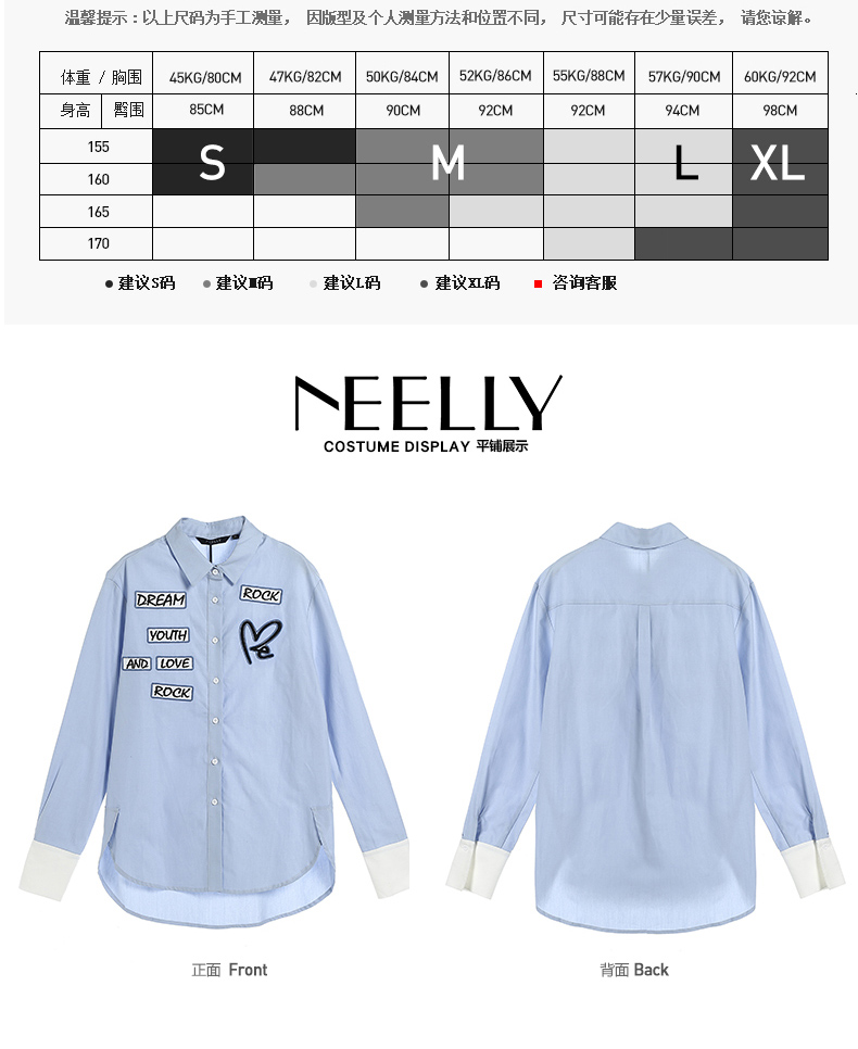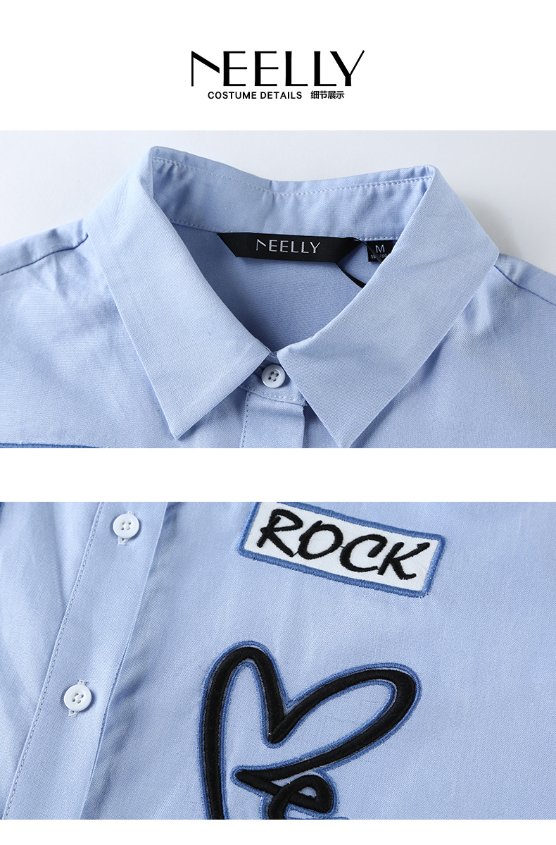 NEELLY/纳俪新款女纯色字母印花衬衣休闲衬衫N056802094