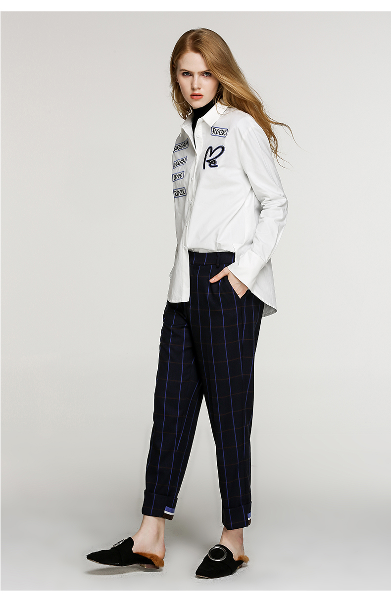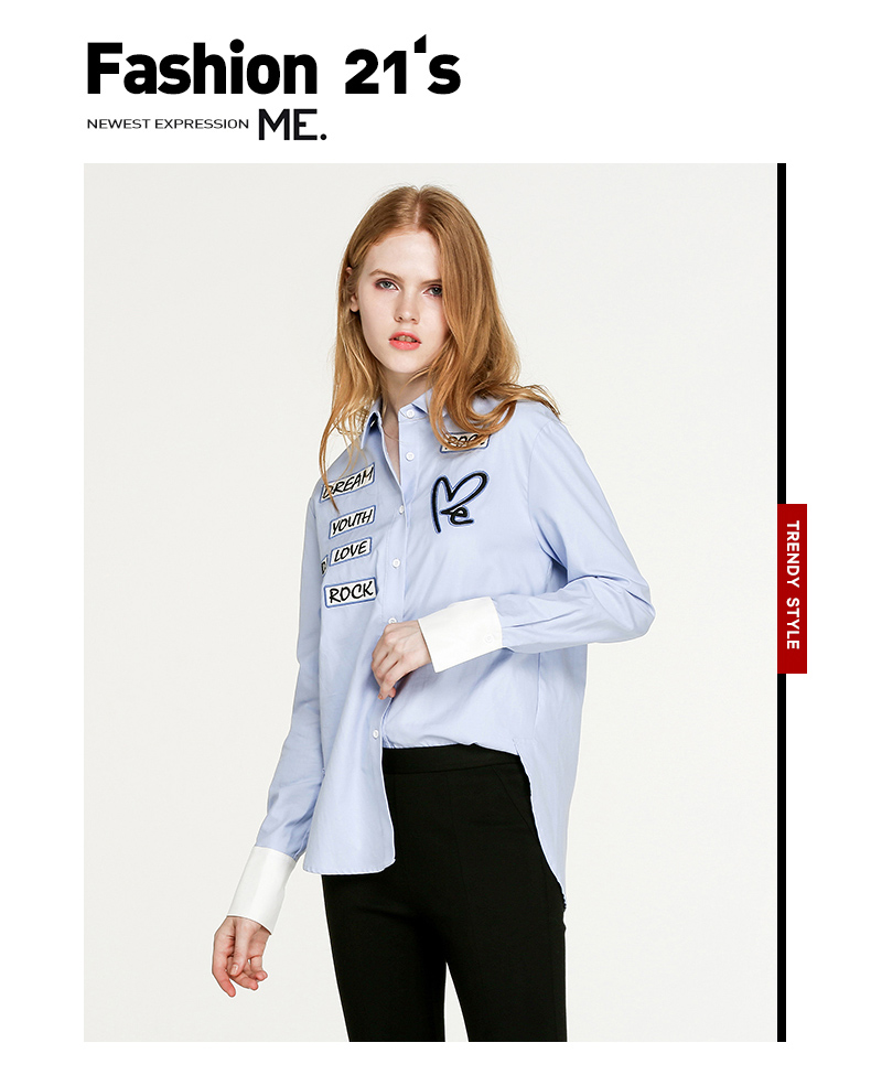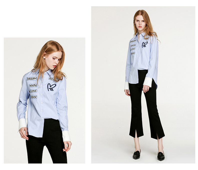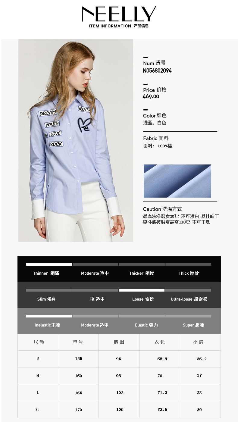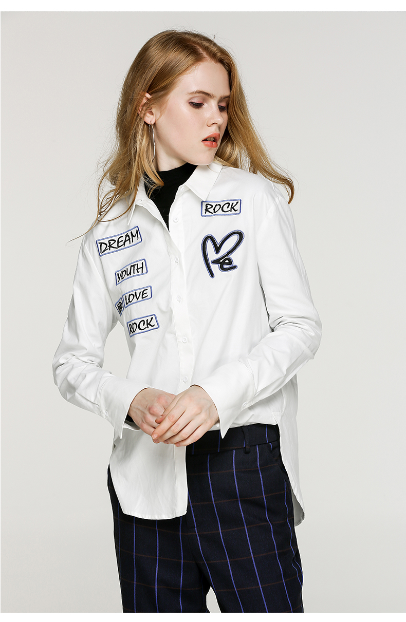 NEELLY/纳俪新款女纯色字母印花衬衣休闲衬衫N056802094
